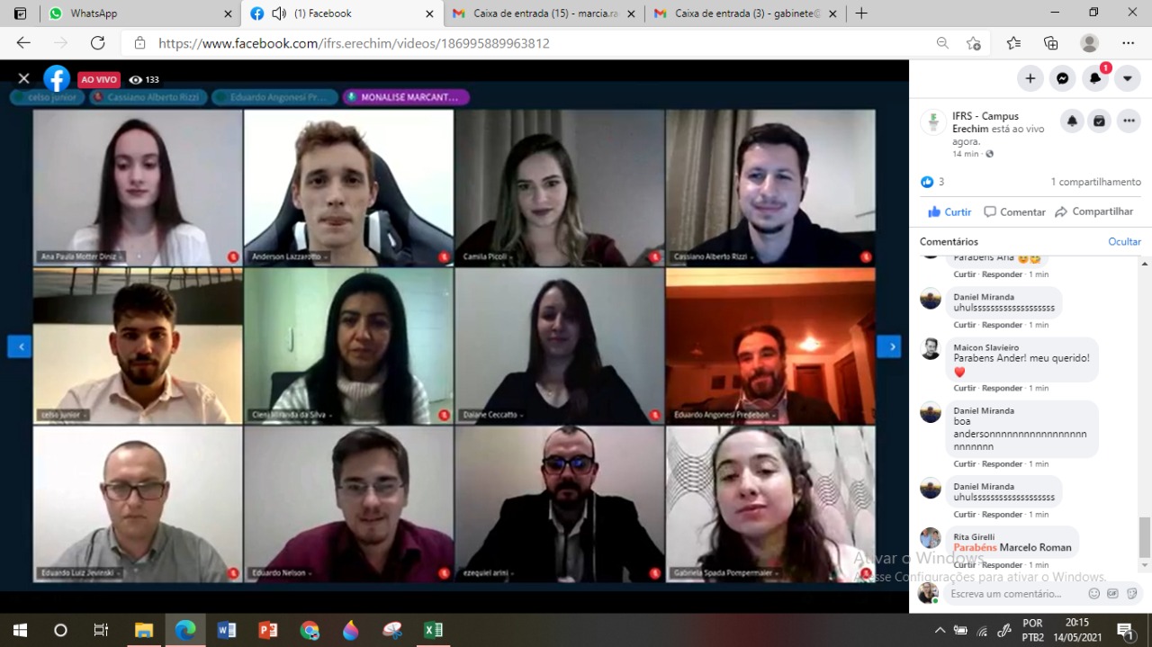 Sexta-feira, dia 14 de maio de 2021, o Campus Erechim realizou a terceira Cerimônia de Colação de Grau por meio de webconferência. Na ocasião 9 estudantes do Curso de Bacharelado em Engenharia Mecânica e 17 estudantes do Curso de Tecnologia em Marketing, colaram grau de forma remota. Diferentemente das Colações por meio de webconferência realizadas anteriormente, esta foi realizada totalmente no formato online. Participaram da Cerimônia, o Diretor-Geral do Campus Erechim, Eduardo Angonesi Predebon, a Coordenadora do Setor de Registros Acadêmicos, Monalise Marcante Meregalli, o Coordenador do Curso de Bacharelado em Engenharia Mecânica, Demian Boaroli, e o Coordenador do Curso de Tecnologia em Marketing, Sidnei Dal’Agnol.