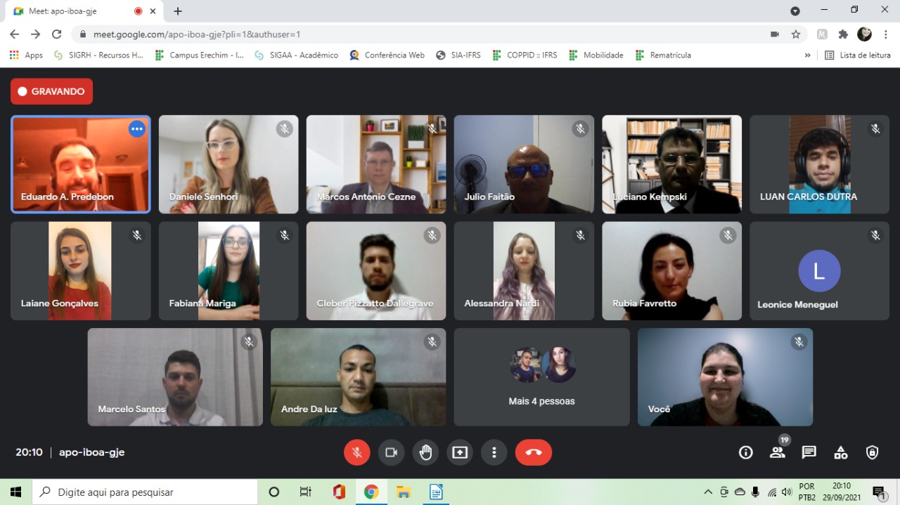 Nesta quarta-feira, dia 29 de setembro de 2021, o IFRS – Campus Erechim realizou a Cerimônia de Conclusão de Curso (Cursos Técnicos), por meio de webconferência. Na ocasião, nove estudantes dos Cursos Técnicos em Finanças, Logística e Mecânica participaram da cerimônia, que foi realizada em formato totalmente online.
