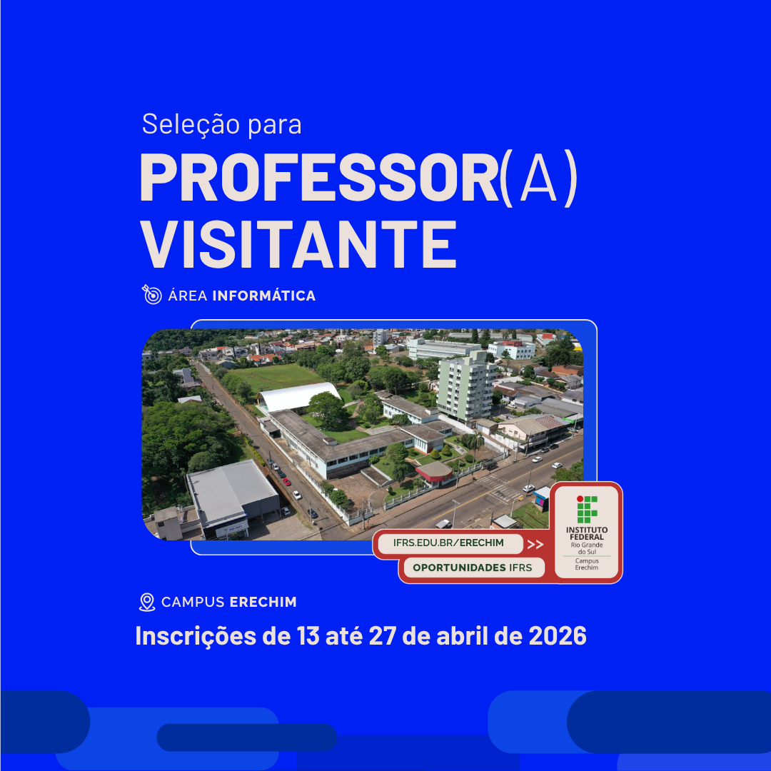 Estão abertas de 13 a 27 de abril de 2026 as inscrições para processo seletivo simplificado para professor visitante na área de Informática. De acordo com o Edital nº 17/2026, será disponibilizada uma vaga, com carga horária de 40 horas semanais em regime de contratação. As inscrições serão realizadas somente on-line através de formulário próprio, disponível no Anexo III do edital.