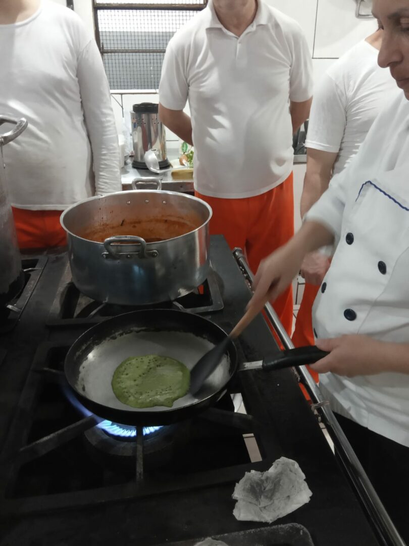 Nesta etapa foram tratados assuntos como o funcionamento do processo de fermentação e as diferenças entre o fermento químico e microbiológico. Também foram produzidas várias receitas, entre elas, pizza, cuca alemã recheada com farofa, pizza de sardinha, panqueca de cenoura e panqueca de espinafre. Os cursistas apresentaram grande interesse e curiosidade pelo processo de produção desses alimentos.