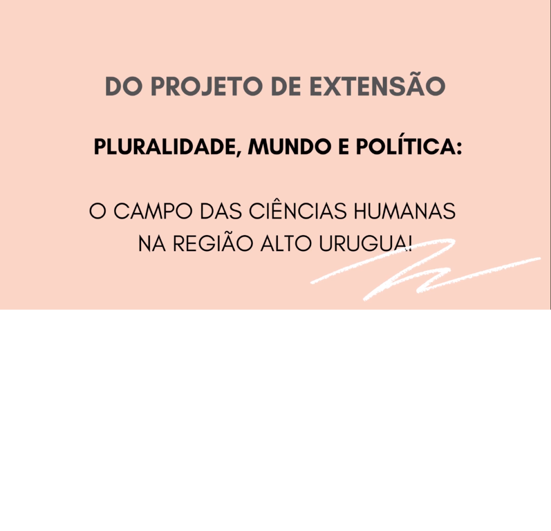 Pluralidade, Mundo e Política: O campo das Ciências Humanas na Região Alto Uruguai, é um projeto de extensão voltado para a disseminação da Área das Ciências Humanas no Campus Erechim do IFRS, apresentado na 9ª JEPEX e 3ª Mostra Cultural – IFRS Erechim por Emili Rosset e orientado pelo coordenador do projeto Giovane Rodrigues Jardim. O projeto busca aos estudantes, a importância dessa área na formação profissional e na formação como cidadão em termos éticos, estéticos e políticos.