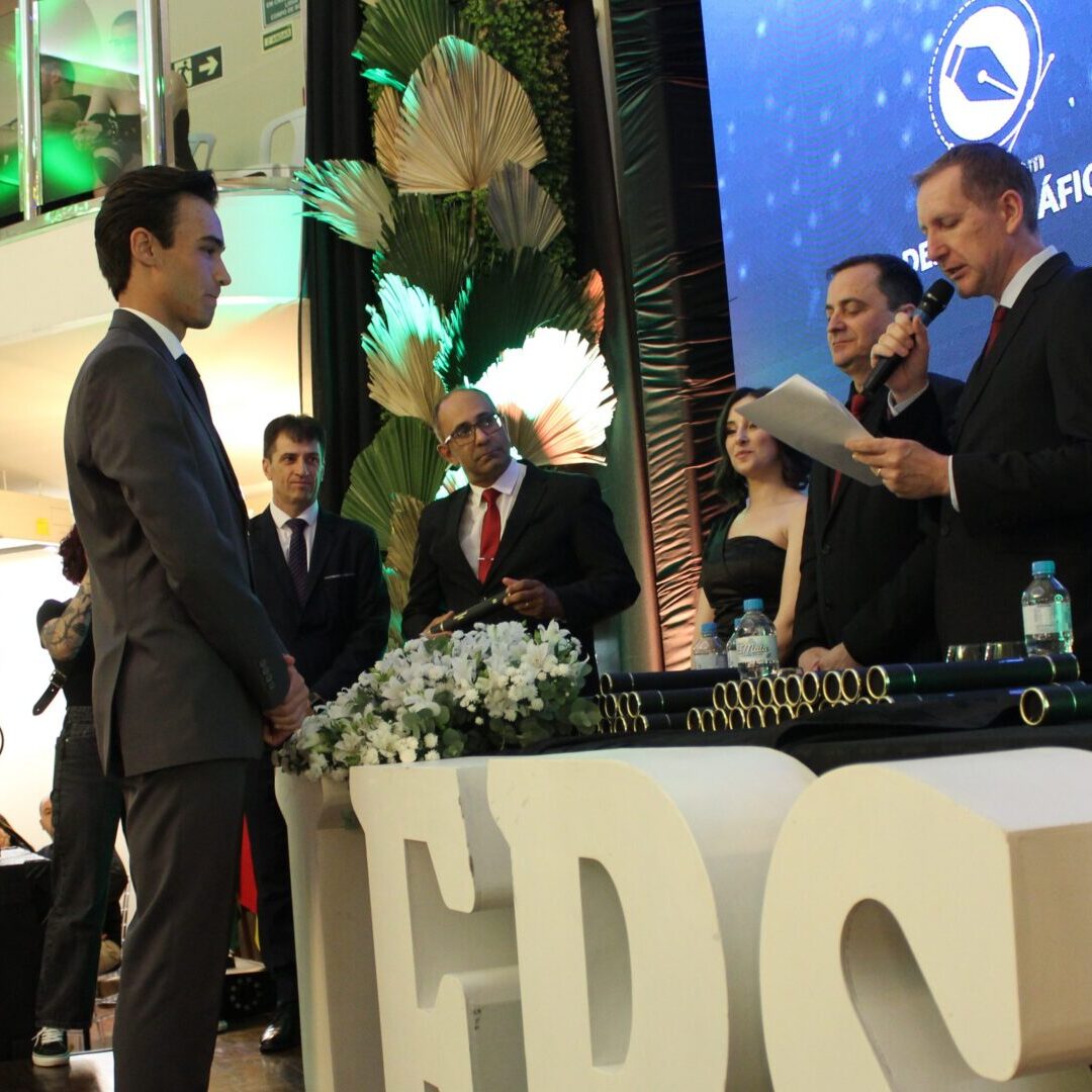 Estiveram reunidos estudantes, familiares, autoridades e servidores. A cerimônia foi marcada por diversos momentos de emoção, lembranças dos desafios percorridos até a conclusão do curso e desejos de maiores realizações no futuro. A coordenadora e paraninfa de Design Gráfico, Camila Carmona Dias, compartilhou com os presentes o fato da instituição estar formando a primeira turma do curso e como se sentia honrada com isso.