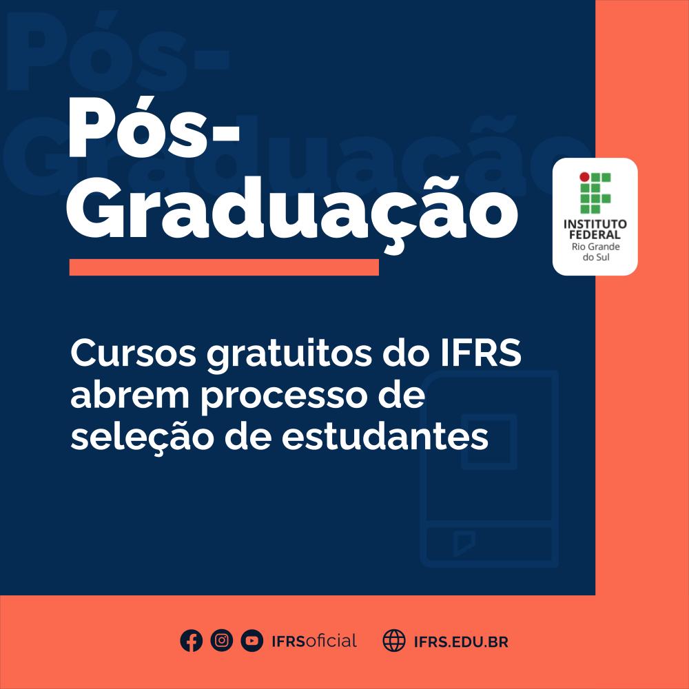 Cursos de pós-graduação gratuitos do Instituto Federal de Educação, Ciência e Tecnologia do Rio Grande do Sul (IFRS) estão com inscrições abertas ou abrirão em breve para a seleção de estudantes. Os cursos são presenciais e o ingresso será no primeiro semestre de 2026. Confira informações sobre as oportunidades.