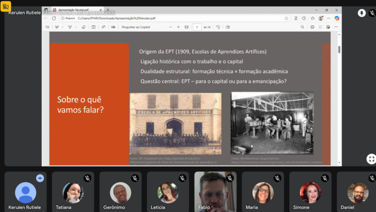 As discussões abordaram temas como trajetórias e memória institucional, patrimônio e culturas escolares, experiências históricas de trabalho e educação, história das mulheres na EPT, repositórios digitais e outras tecnologias.