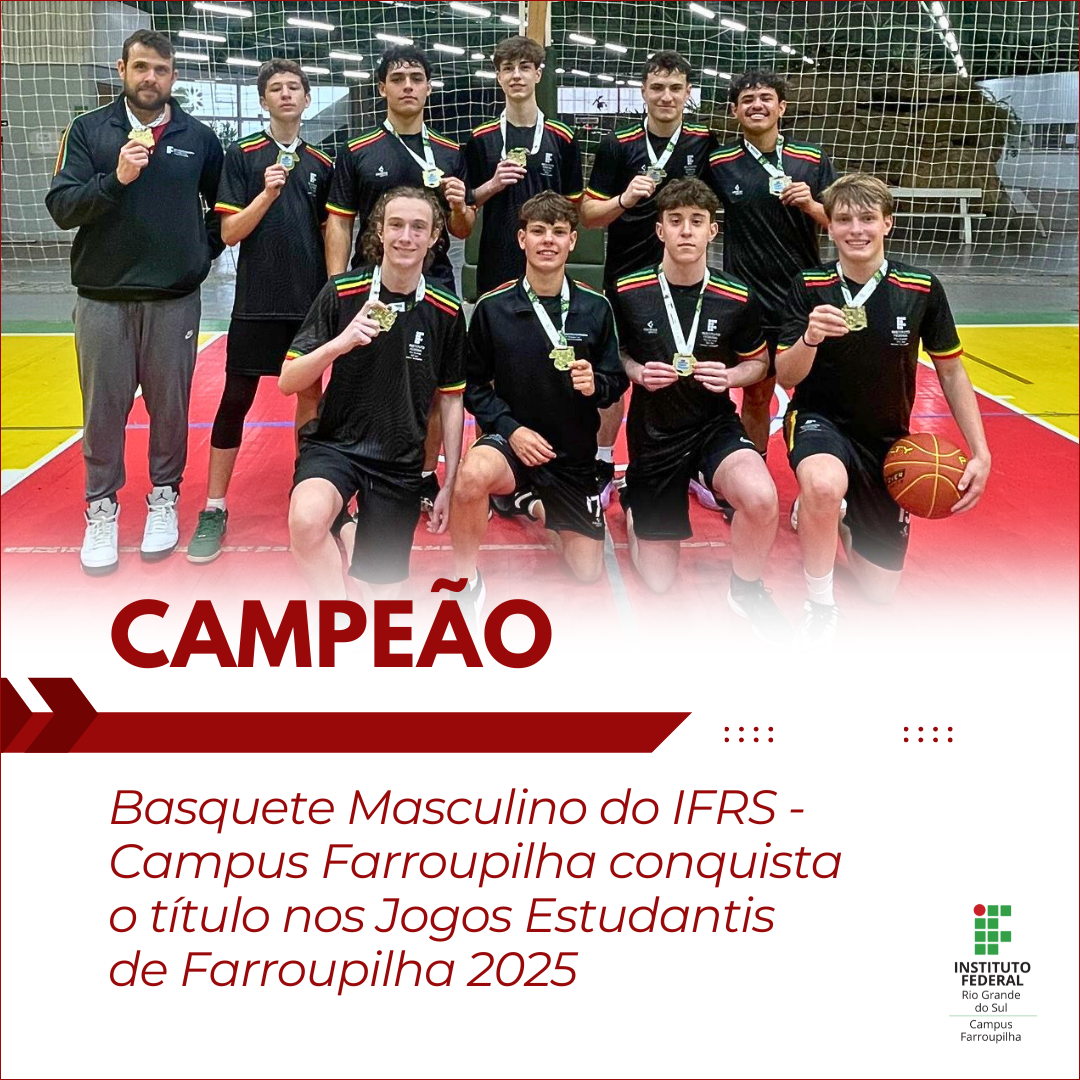 A equipe de basquete masculino do IFRS – Campus Farroupilha foi a grande campeã da 39ª edição dos Jogos Estudantis de Farroupilha, realizada nos dias 29 e 30 de setembro de 2025. A competição reuniu instituições de ensino do município em disputas acirradas.