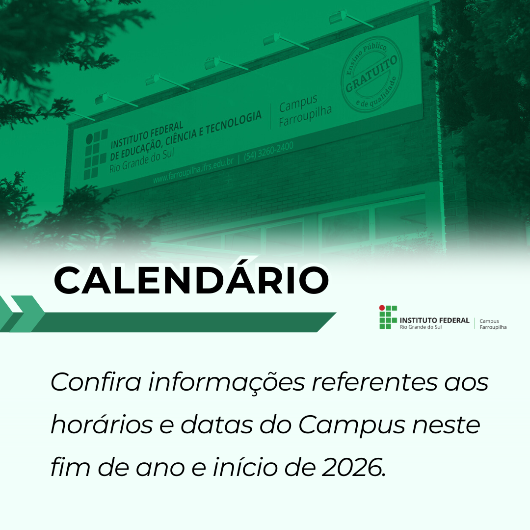 Confira informações referentes aos horários e datas do IFRS – Campus Farroupilha neste fim de ano e início de 2026.