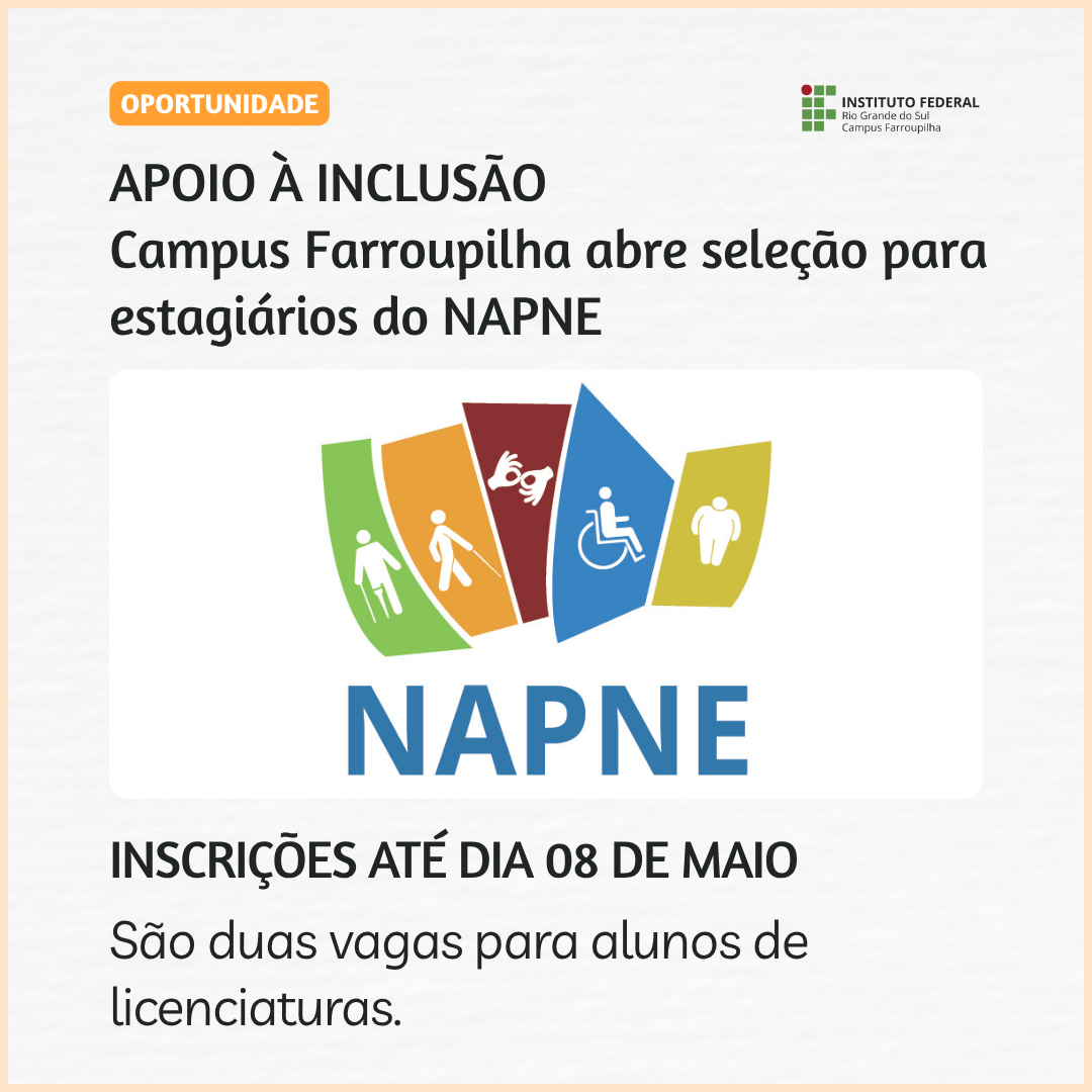 Estão sendo ofertadas duas vagas para atuação no NAPNE, divididas entre os turnos da manhã e tarde: