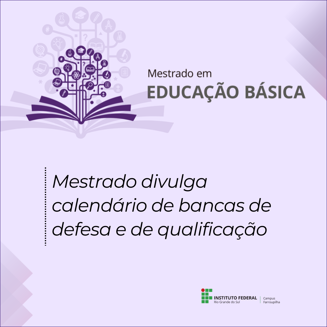O IFRS – Campus Farroupilha realiza, no dia 21 de novembro de 2025, a primeira banca de defesa do Mestrado em Educação Básica. O trabalho será apresentado pelo mestrando José Recktenwalt, às 9h. A pesquisa a ser apresentada à banda é intitulada “De Tempo Integral à Educação Integral: repercussões no currículo da área de linguagens nos anos finais do Ensino…