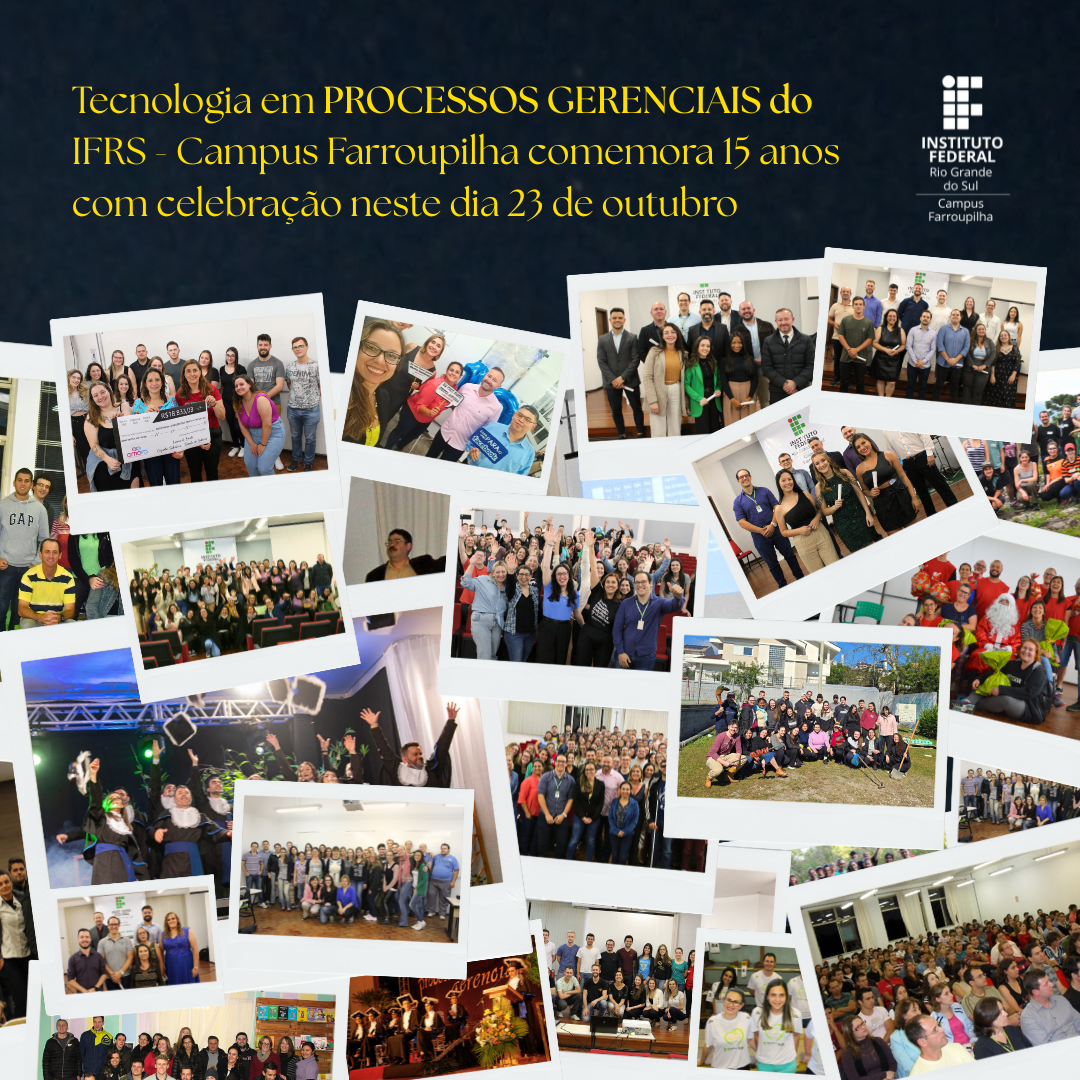 A primeira graduação do IFRS – Campus Farroupilha completa 15 anos de atividade. O curso superior de tecnologia em Processos Gerenciais (TPG) comemora com uma celebração no próximo dia 23 de outubro, dentro da programação da Semana Acadêmica de Processos Gerenciais (veja mais sobre a Semana, aqui). O evento será a partir das 19h, no Auditório do Campus.
