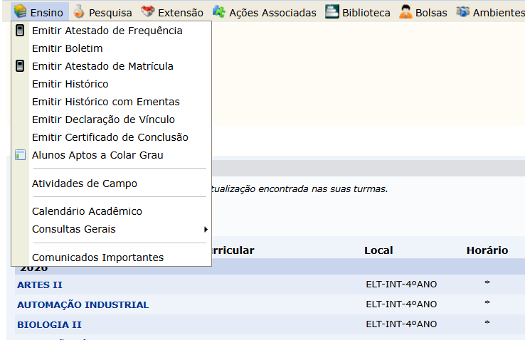 Acesso ao SIGAA e emissão de atestados, histórico, boletim etc.