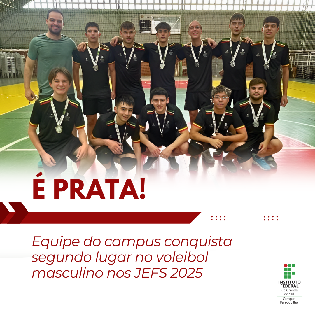 A equipe juvenil masculina de voleibol do IFRS – Campus Farroupilha garantiu a medalha de prata na edição 2025 dos Jogos Estudantis de Farroupilha (JEFS), organizado pela Prefeitura Municipal. A partida ocorreu nesta quinta-feira, dia 27 de novembro de 2025, no Parque Cinquentenário.