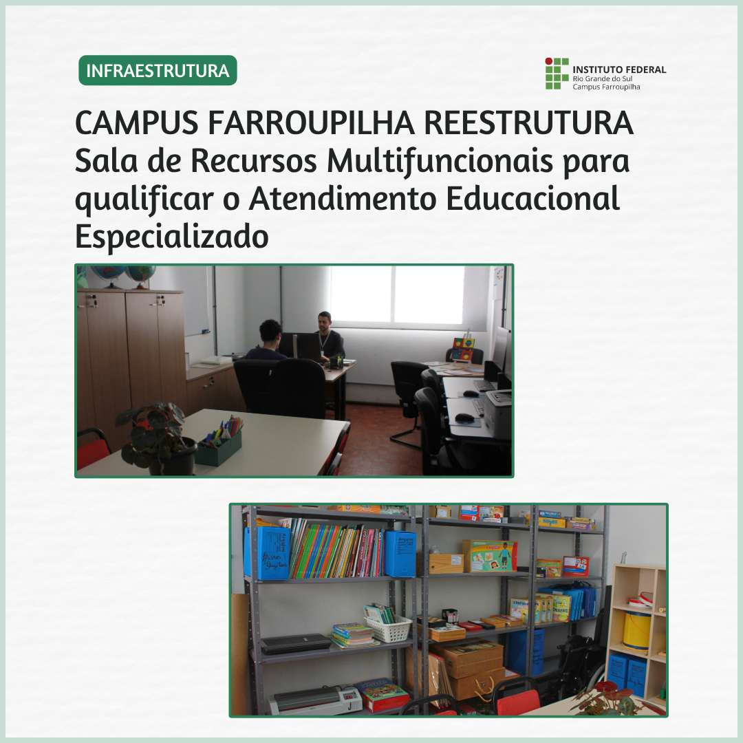 Para mais informações a respeito da sala e sua utilização, entre em contato pelos e-mails napne@farroupilha.ifrs.edu.br e aee@farroupilha.ifrs.edu.br.