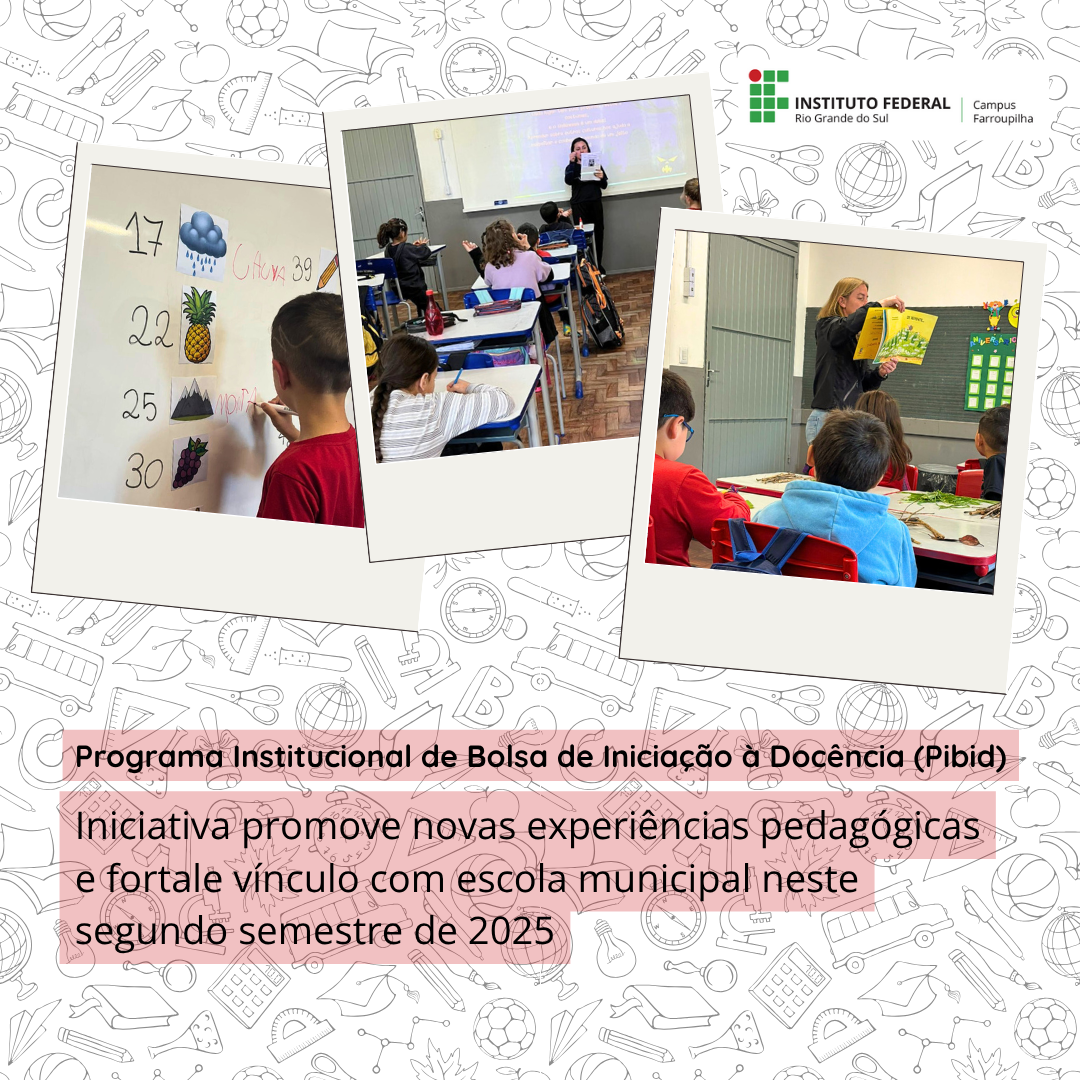 O segundo semestre de 2025 foi marcado por muita energia, criatividade e aprendizado para as estudantes do Programa Institucional de Bolsa de Iniciação à Docência (Pibid) do IFRS – Campus Farroupilha. Atuando na Escola Municipal de Ensino Fundamental Cinquentenário, as 16 pibidianas – estudantes do curso de Licenciatura em Pedagogia – vivenciaram práticas que uniram teoria e experiência em sala de aula, sob a orientação das professoras Carina Malonn e Samantha Dias de Lima.