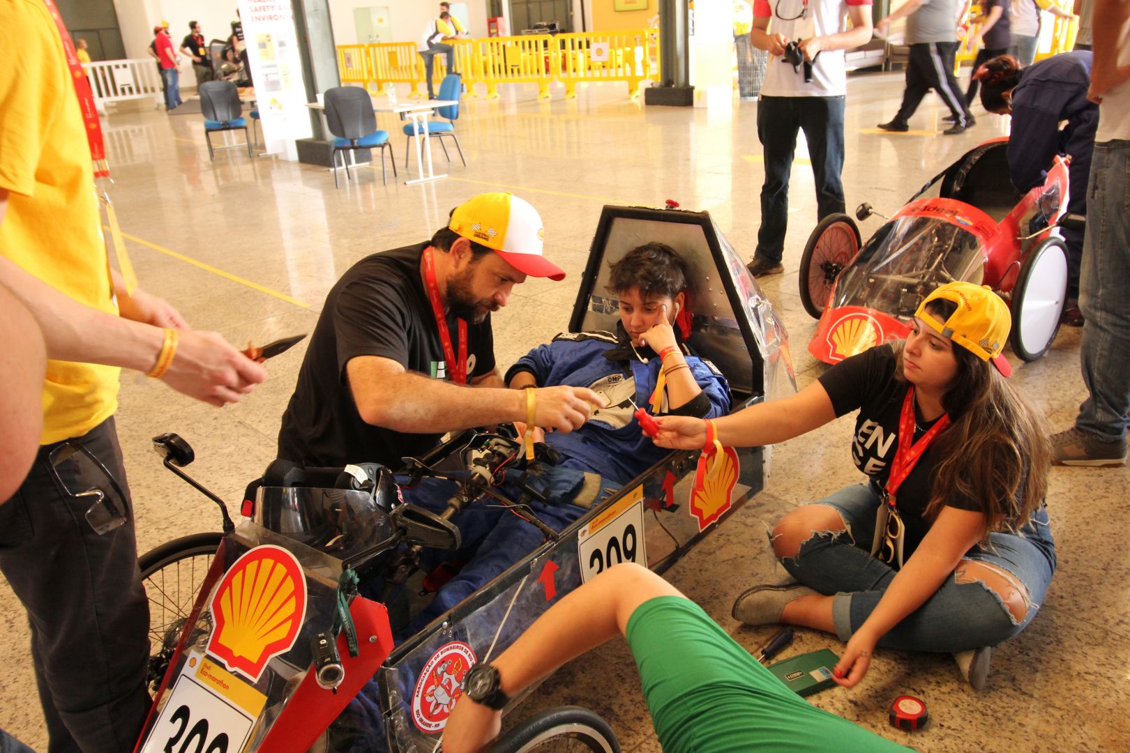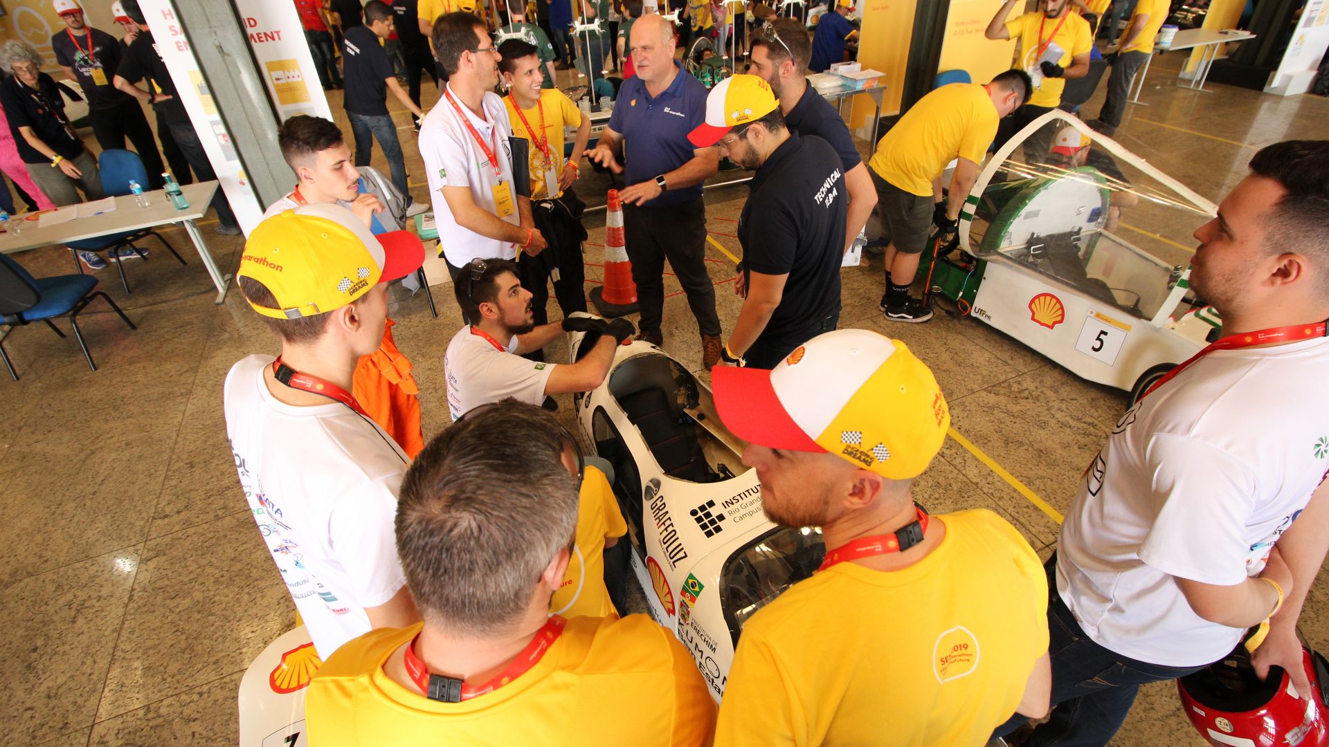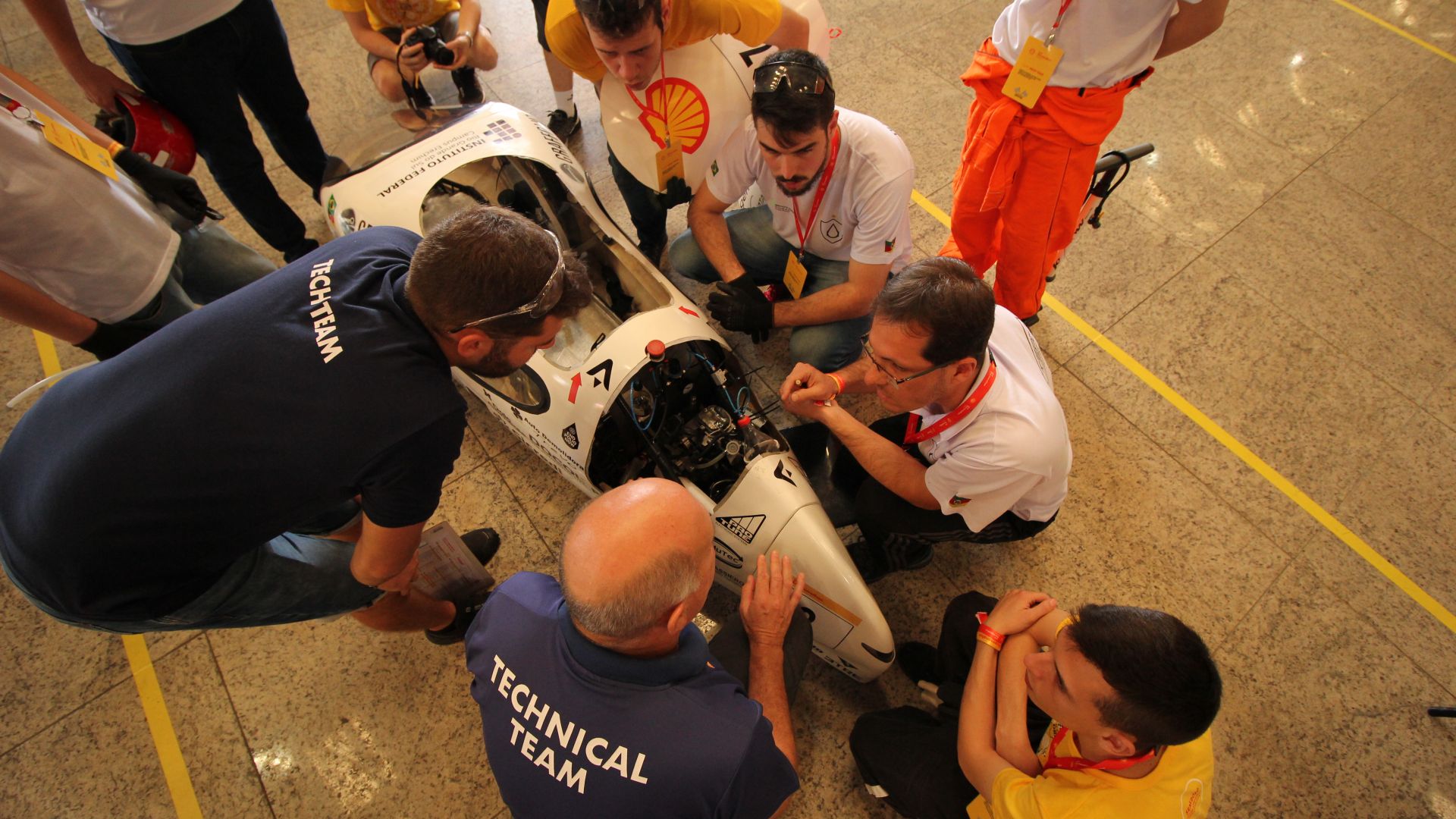A Shell Eco-marathon Brasil, neste ano, conta com mais de 500 pessoas, na maioria estudantes, divididas em 37 equipes. A competição desafia os estudantes a projetarem protótipos movidos a gasolina, etanol ou bateria e que consumam menos energia.