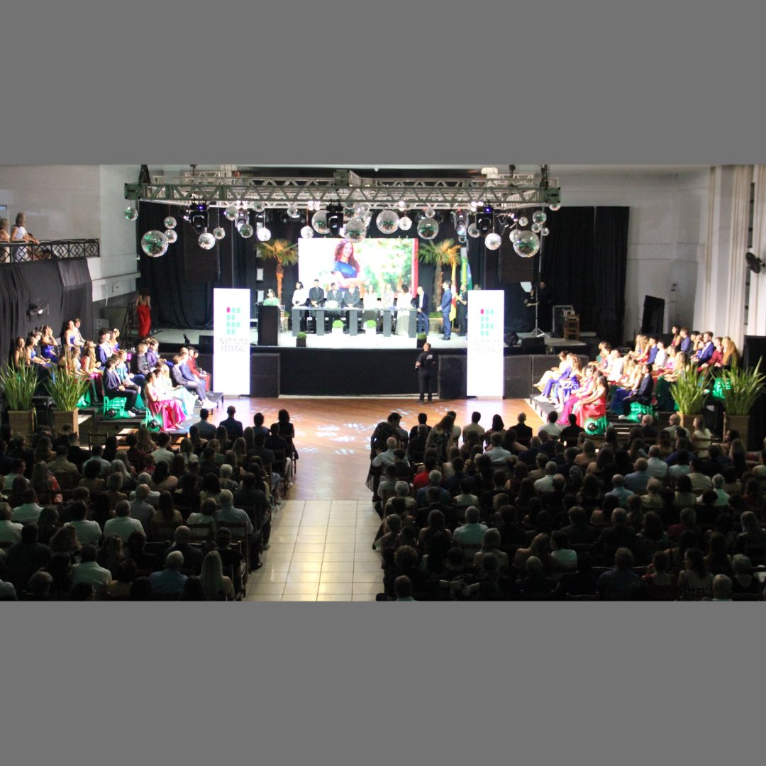 Após quatro anos de curso, foi a maior cerimônia já realizada pelo campus. Ao todo, 23 jovens receberam o título de Técnicos em Química, 24 de Técnico em Meio Ambiente e outros 25 receberam o de Técnico em Informática das mãos do diretor-geral do Campus Feliz, Marcelo Lima Calixto. Compuseram a mesa de honra, a pró-reitora de Administração do IFRS, Tatiana Weber, que representou o reitor do IFRS na solenidade. Ainda, os paraninfos da turma, professores Cleonei Antonio Cenci, José Plínio Guimarães Fachel e Izandra Alves, os professores coordenadores dos cursos Luiza Pieta, Julio César de Vargas Oliveira e Moser Silva Fagundes e, secretariando a sessão, a coordenadora de registros escolares substituta Gloria Soares.