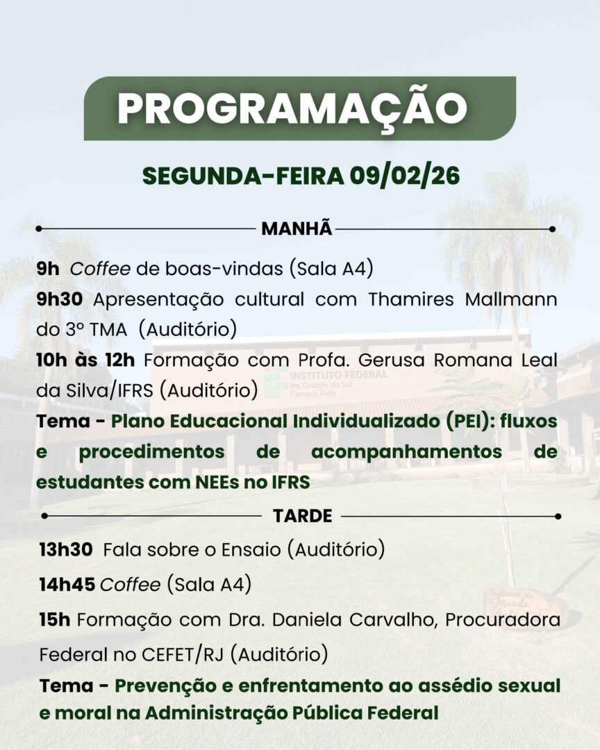 O Campus Feliz do IFRS realiza nos próximos dias 09 e 10 de fevereiro a sua 15ª Jornada Pedagógica. O evento que reúne docentes e técnicos administrativos da instituição e marca o início das atividades do período letivo de 2026.