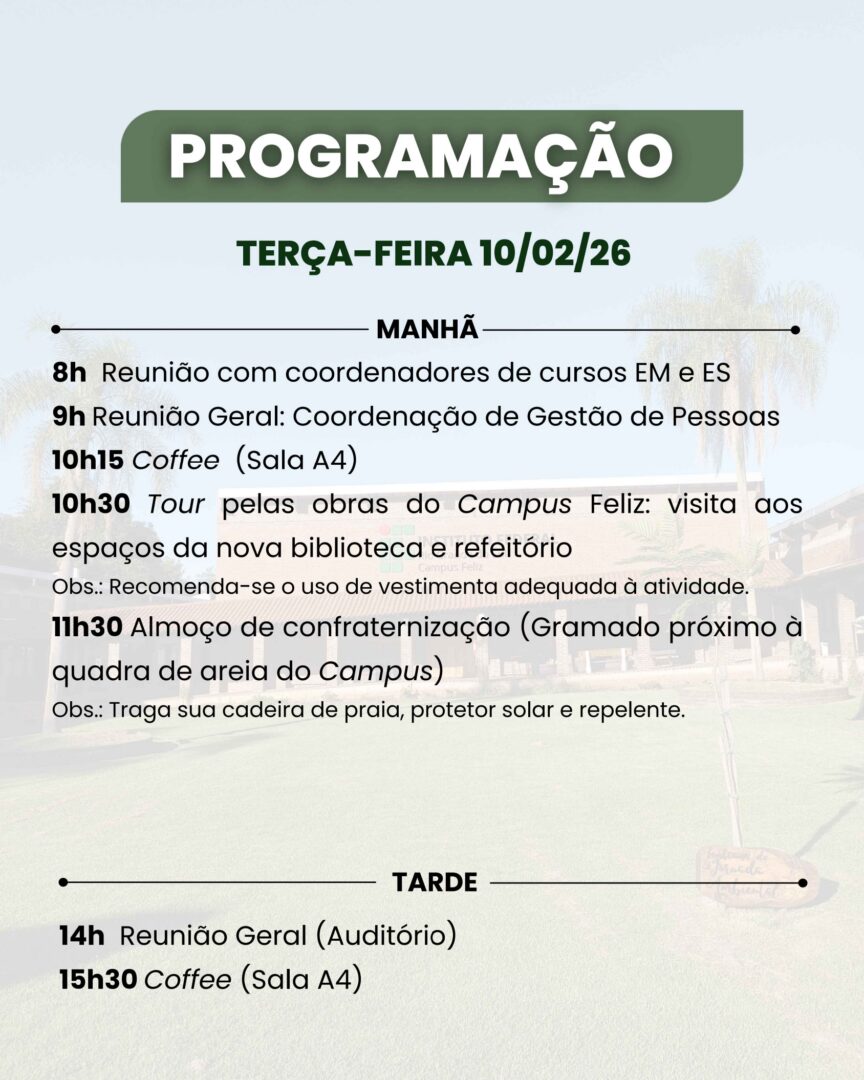 Jornada Pedagógica 2026 será realizada nos dias 09 e 10 de fevereiro