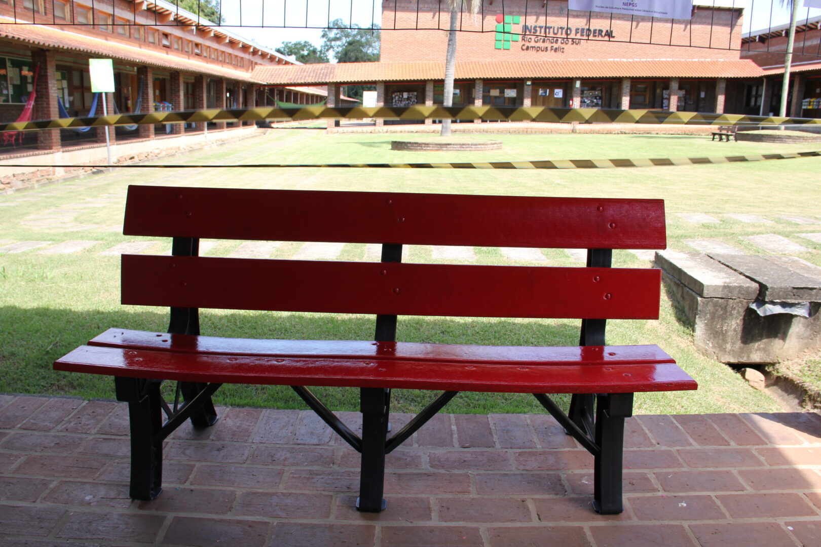 Durante este mês de março, o Campus Feliz, assim como outros campi do IFRS, aderiu à Campanha dos Bancos Vermelhos. A intervenção convida quem passa a parar e refletir sobre a violência contra a mulher, e também a levantar e agir para evitar novas vítimas, como informa o cartaz afixado no encosto.