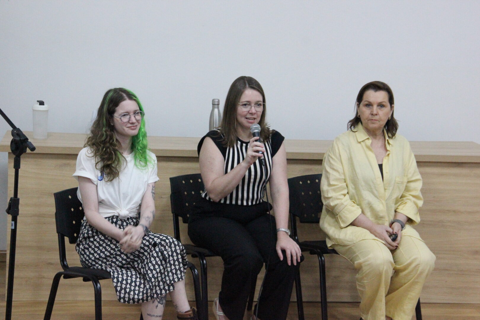 Ainda, como momento de abertura, o público presente pode ouvir e participar das discussões do painel temático “Planeta água: a cultura oceânica para enfrentar as mudanças climáticas”. Cada convidada trouxe um enfoque dos seus estudos sobre o assunto geral do evento e que se complementaram. A professora Dra. Rosmary Nichele Brandalise (Universidade de Caxias do Sul) falou sobre “Plásticos nos rios e oceanos: como as nossas ações moldam o futuro do planeta”. A bióloga Júlia Löw Eizerik (UFRGS), trouxe o assunto do “Biomonitoramento marinho: o que as aves nos contam?”. A professora Camila Angélica Baum fez a mediação da mesa, que provocou a plateia sobre as questões de reciclagem de resíduos e degradação ambiental.