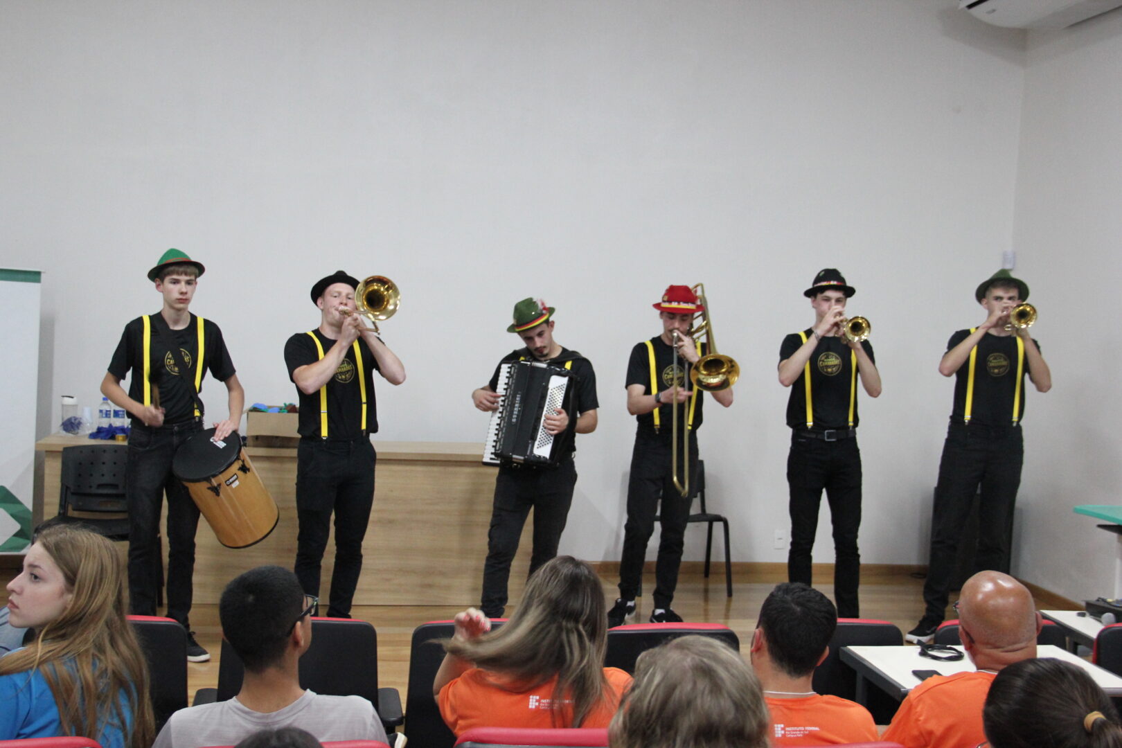 A cerimônia de abertura do evento, realizada na noite de quarta-feira, 15, no auditório do campus, foi agraciada com o espetáculo do Grupo Vocal Pequenas Vozes, de Bom Princípio, com regência da professora Leana Cristina Klering, que é egressa do campus.