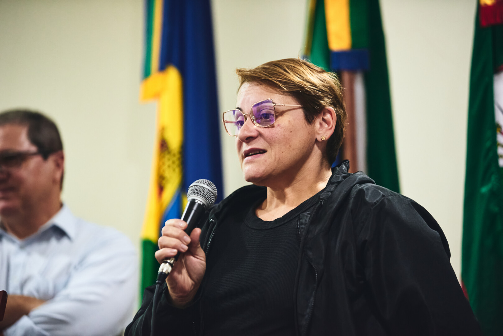 Representando as estudantes, Elisangela Lopes compartilhou sua experiência prévia na área da saúde e o desejo de aprofundar seus conhecimentos para, neste momento, cuidar dos pais idosos e doentes, além de futuramente auxiliar outras pessoas idosas.