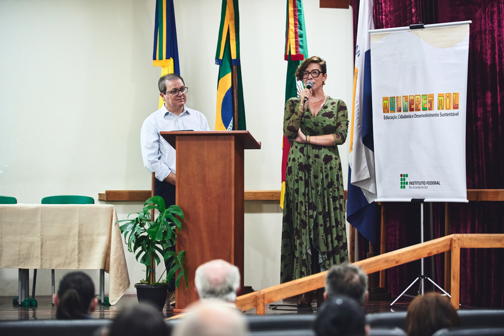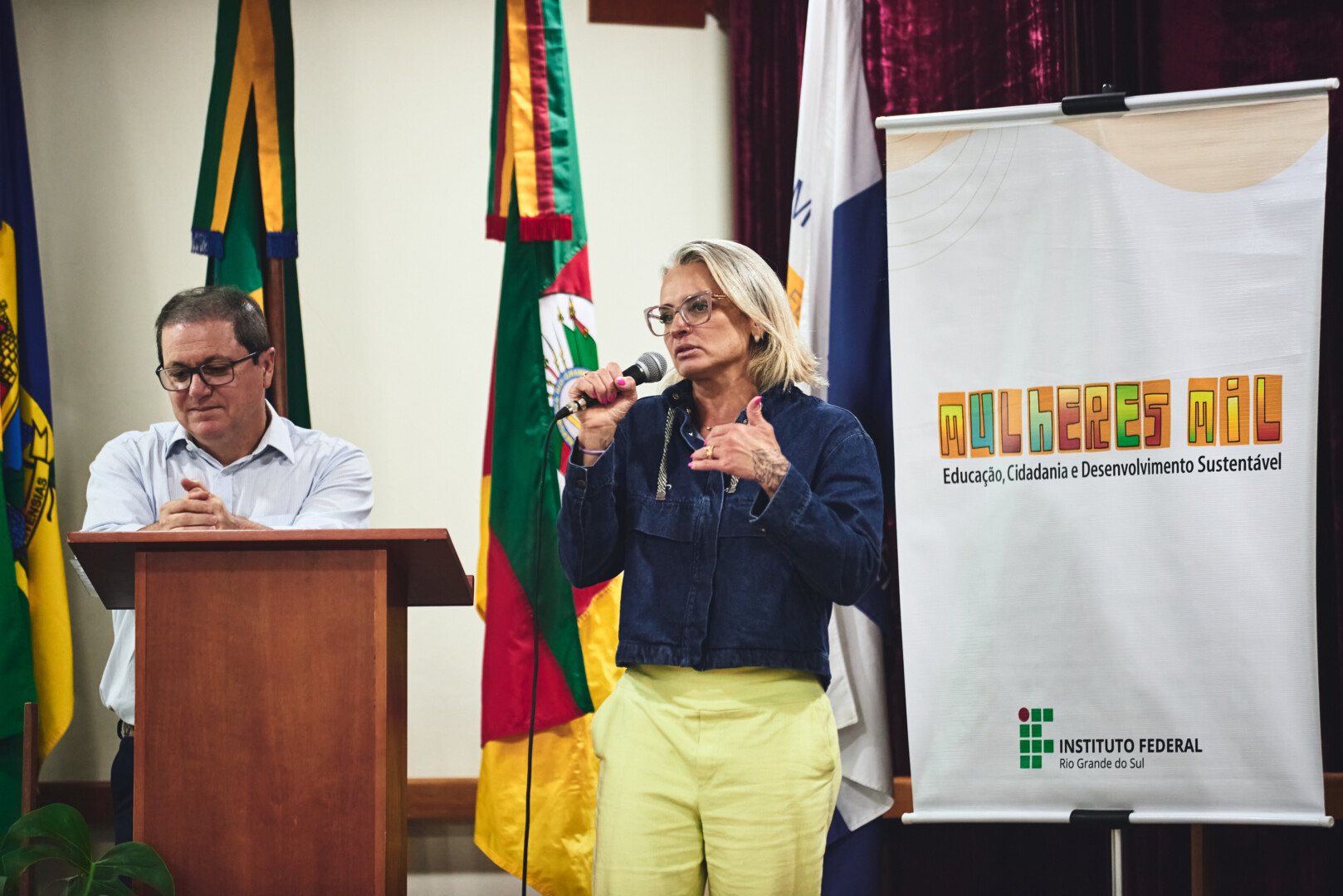 Também se manifestaram a coordenadora-adjunta do Programa Mulheres Mil no campus, Rachel Nasser; a vice-diretora da Escola Municipal Moisés Bezzi, Denise Quitzau Kleine; e o vice-prefeito do município, Luia Barbacovi.