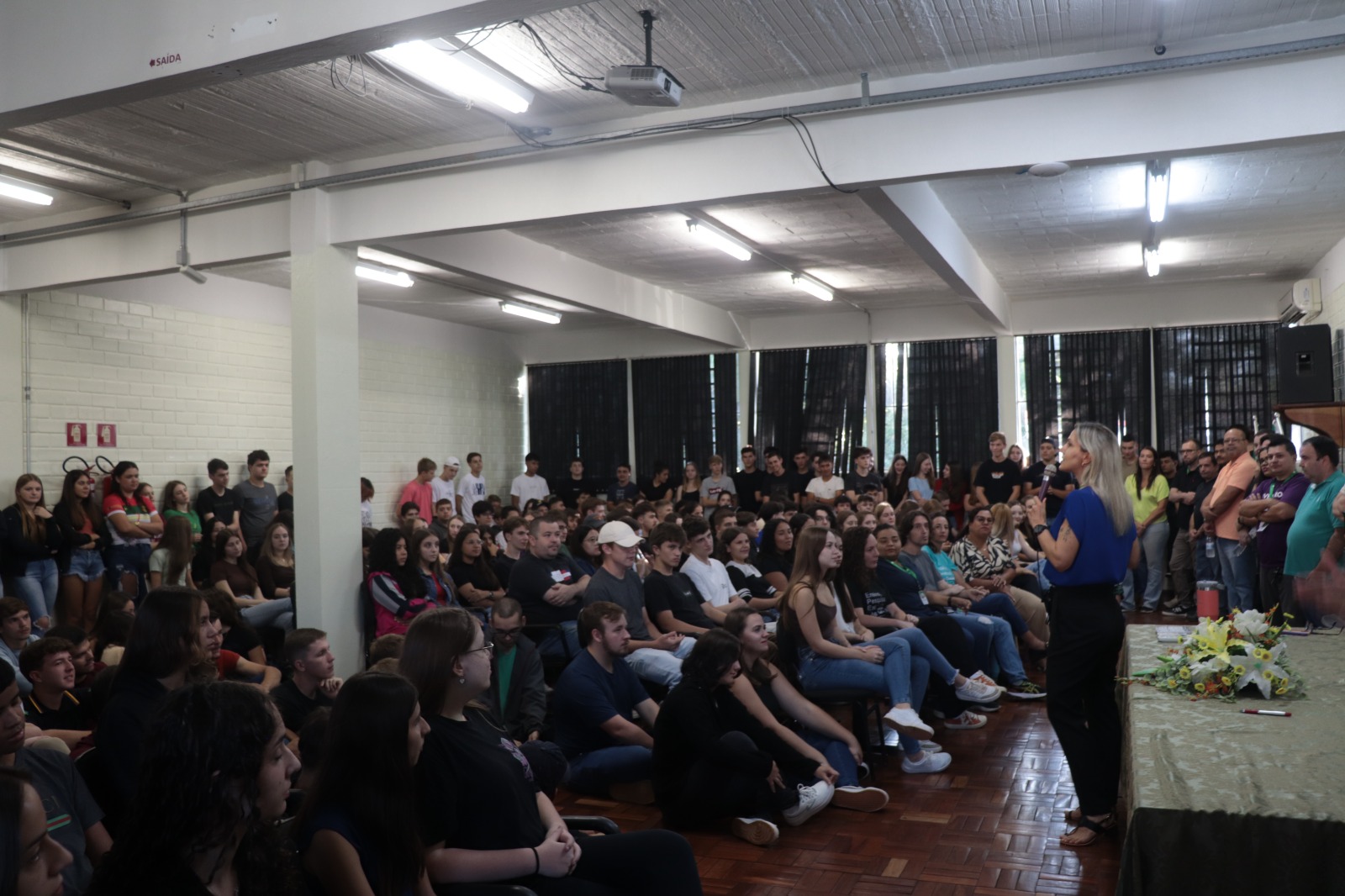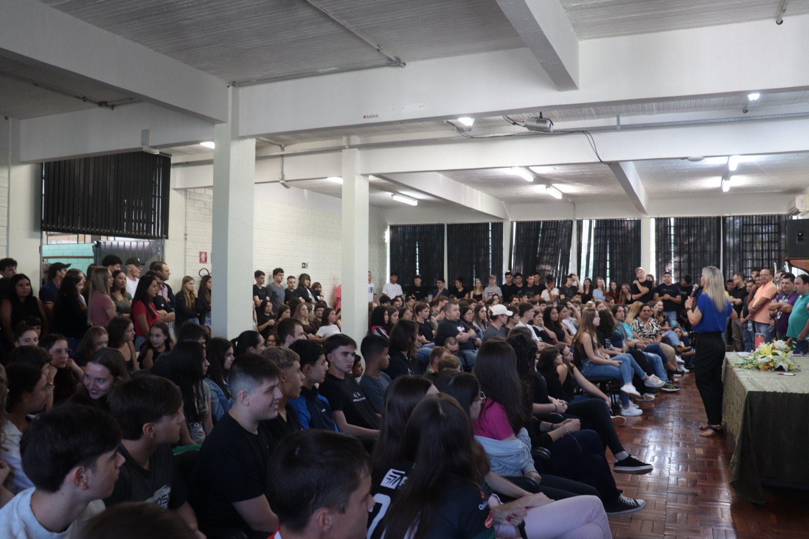 O ano letivo de 2025 no Campus Ibirubá do IFRS começou na manhã de terça-feira, 11 de março, e foi marcado pelo calor dos encontros e reencontros de estudantes e servidores da instituição. As nove turmas dos cursos técnicos integrados ao ensino médio e a turma de Agronomia foram recepcionadas no Auditório Central. A diretora-geral, Sandra Rejane Zorzo, e a diretora de ensino, Carina Tonieto, deram as boas-vindas aos calouros e desejaram um bom retorno aos veteranos, juntamente com os técnico-administrativos e os professores presentes que também se apresentaram e desejaram um excelente ano a todos e todas.