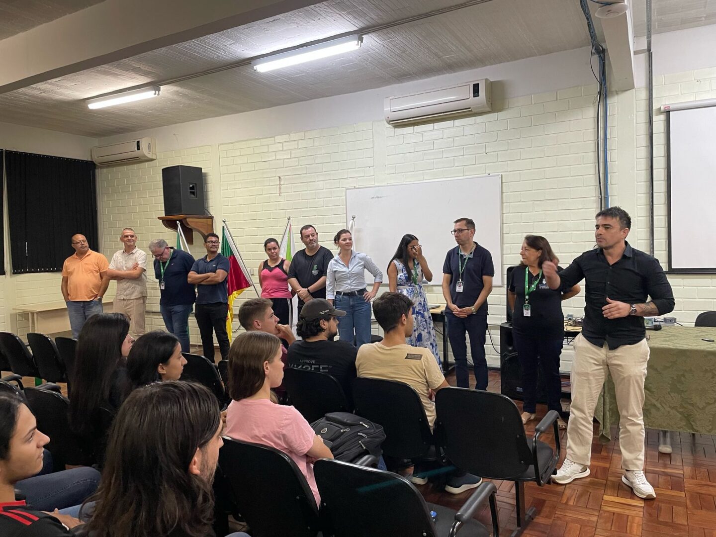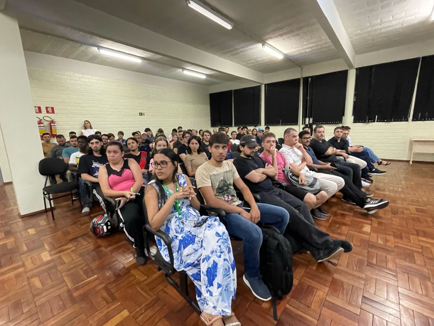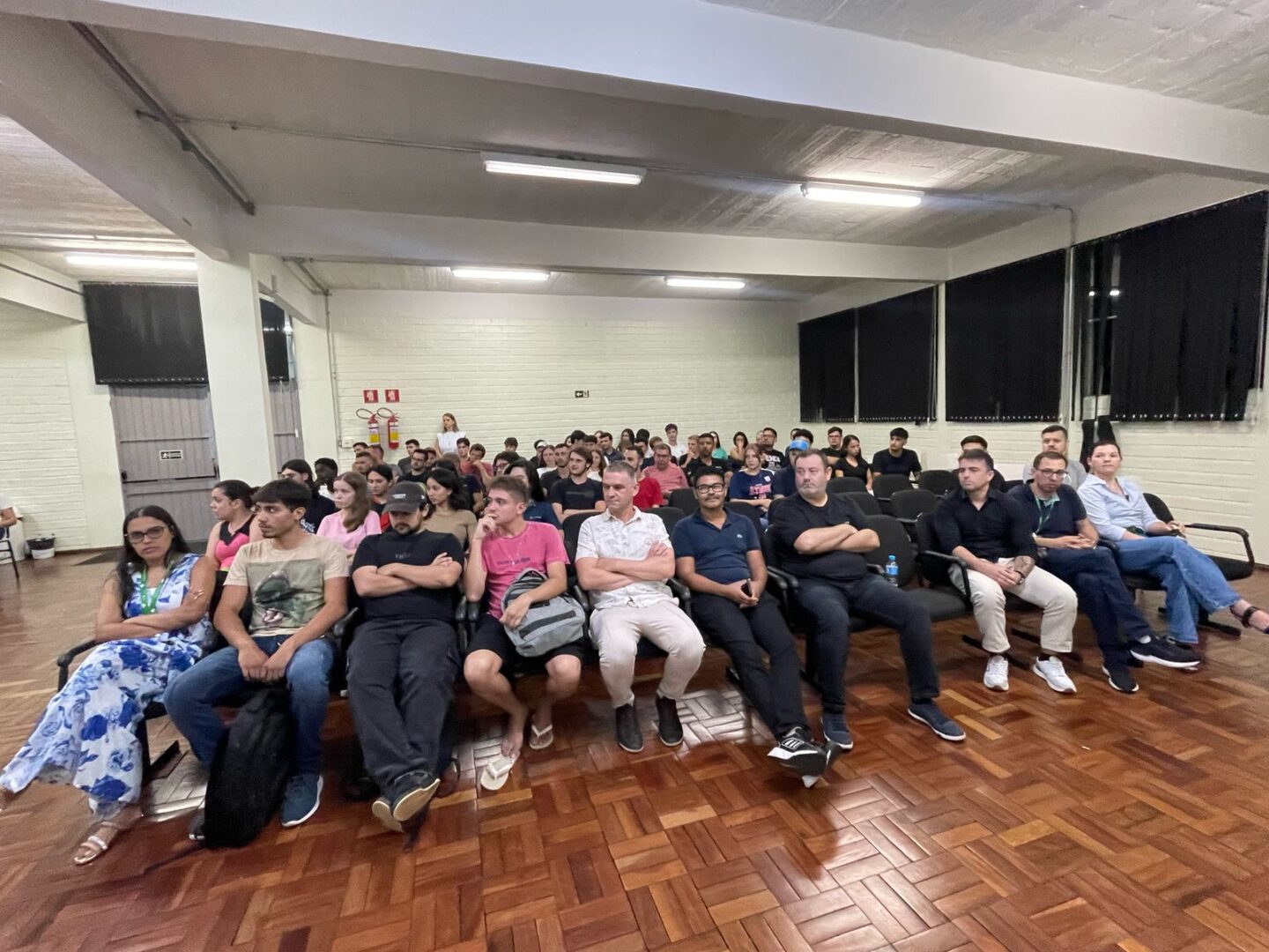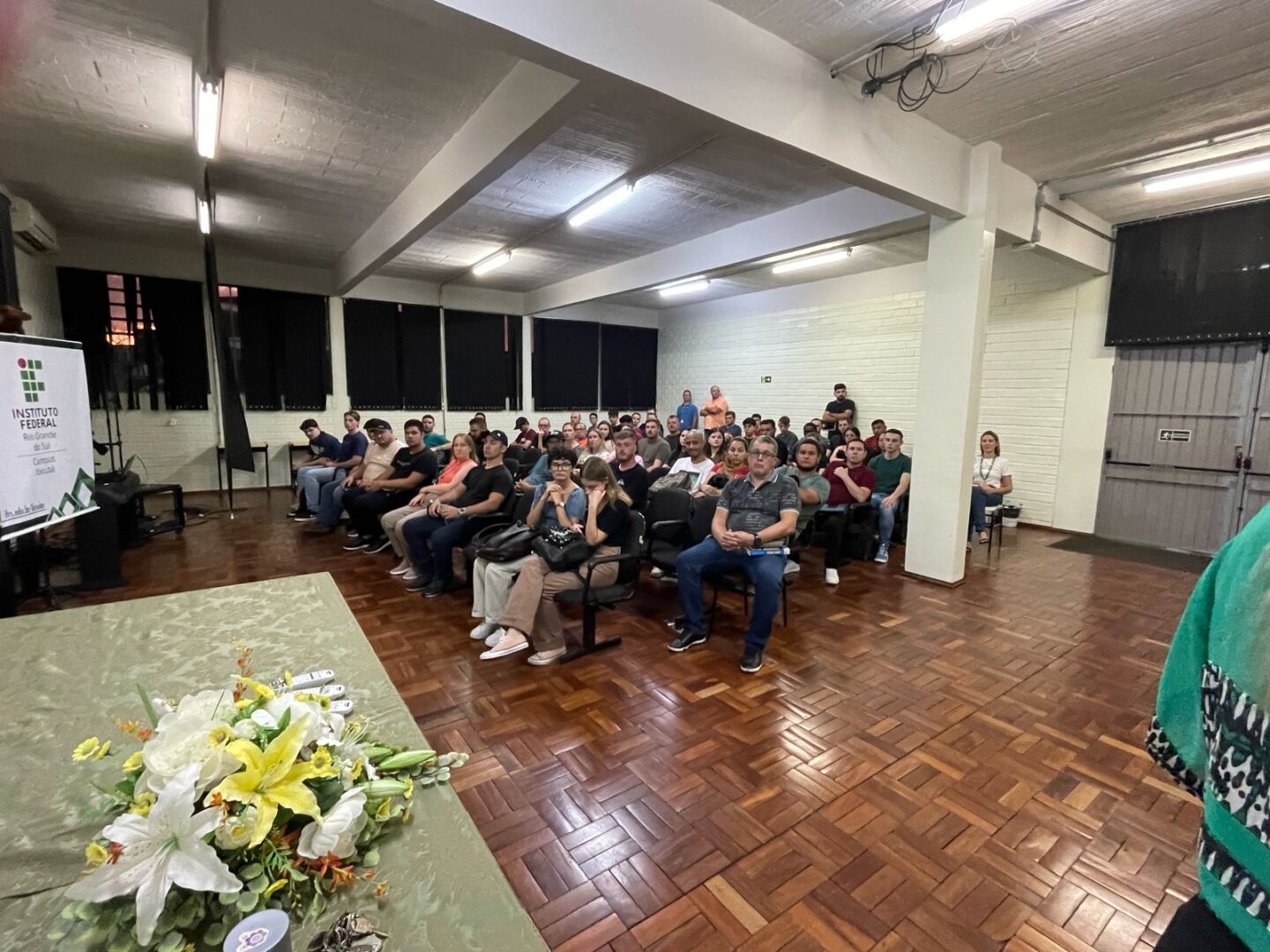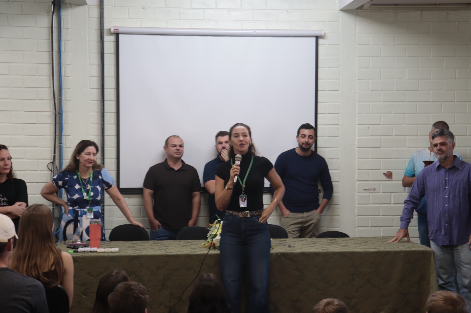 Na noite de 11/03, no Auditório Central do Campus, foi realizada a acolhida dos calouros do 1º semestre letivo de 2025, dos cursos Técnicos Subsequentes em Eletrotécnica e Mecânica e dos cursos de graduação: Ciência da Computação, Engenharia Mecânica e Matemática – Licenciatura. A Diretora do Campus deu as boas-vindas aos calouros, juntamente com a Direção de Ensino, Coordenadores dos Cursos e professores.
