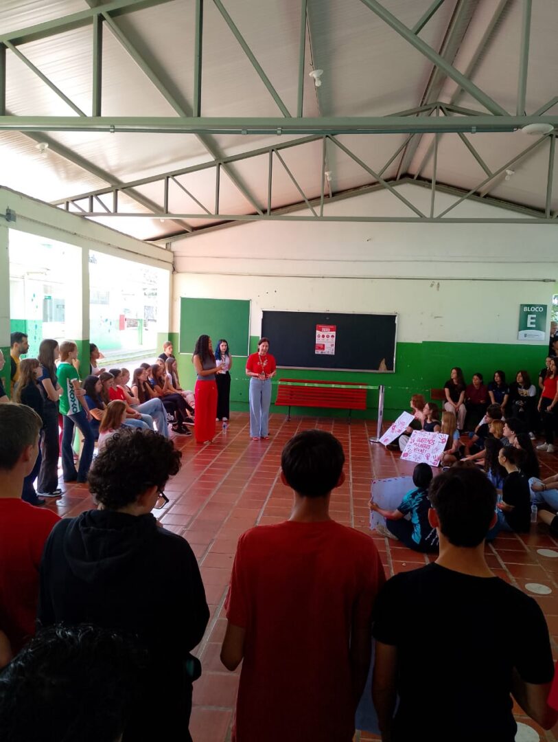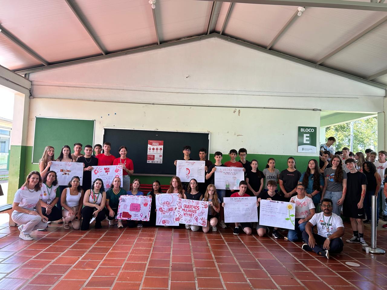 A ação foi promovida pelo Núcleo de Estudos e Pesquisas em Gênero e Sexualidade (NEPGS) do Campus, com apoio da gestão institucional. O momento reuniu integrantes da comunidade acadêmica em um ato de reflexão e conscientização sobre a importância do combate à violência de gênero.