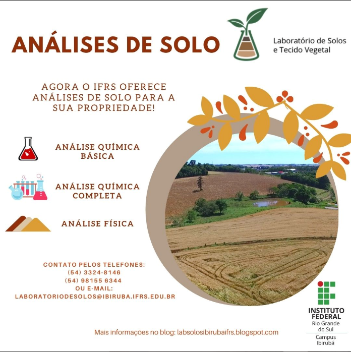 - Laboratório de Solos (Ibirubá): laboratoriodesolos@ibiruba.ifrs.edu.br ou 54 33248146