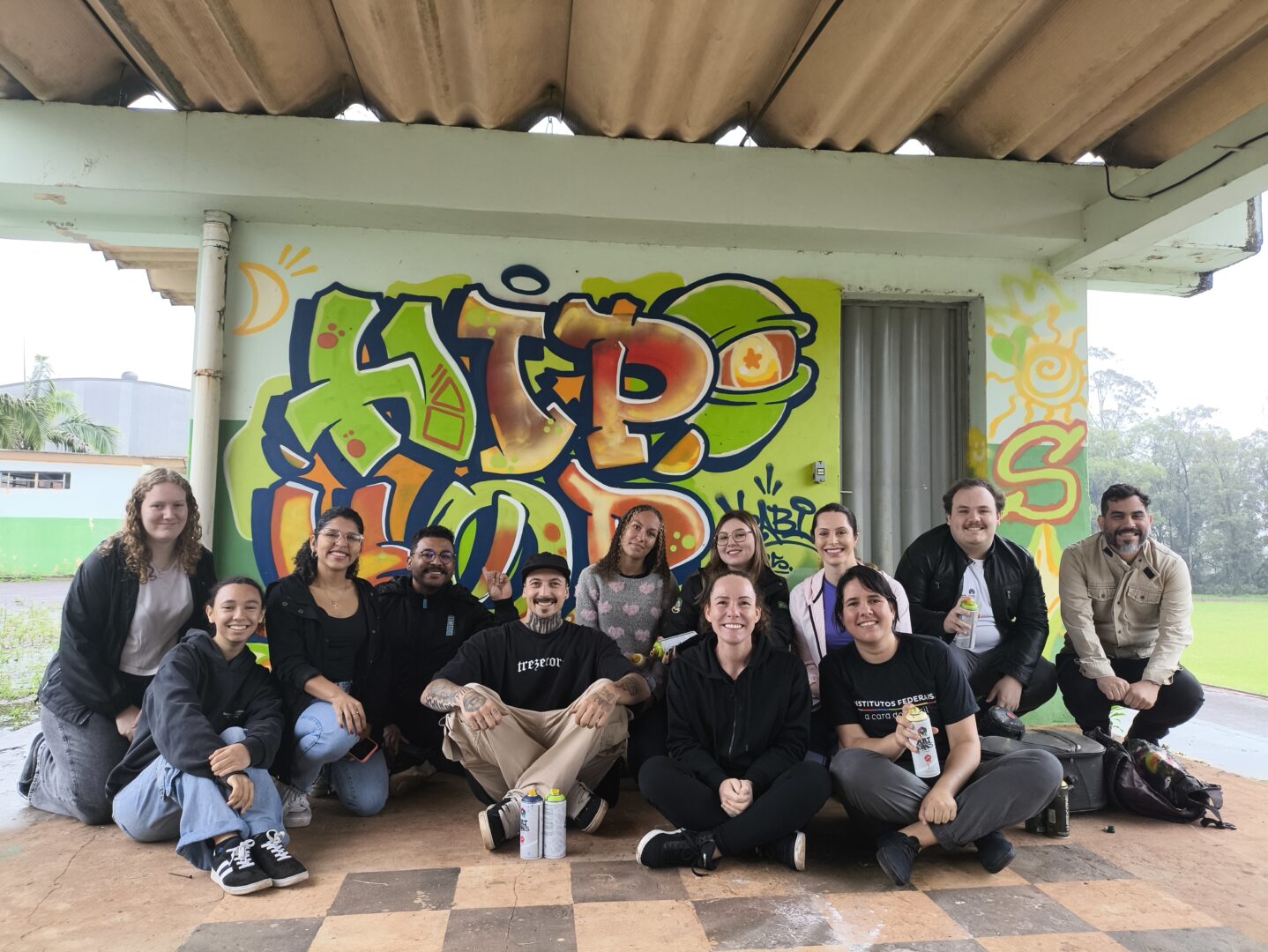 A oficina de graffiti promovida pelos Núcleos de Diversidade e Afirmação (NEPGS e NEABI) integrou estudantes, professores e técnicos-administrativos nesta semana, na programação da II Semana Integrada de Ensino, Pesquisa e Extensão (SIEPEX). Realizada em duas sessões, a atividade uniu elementos teóricos e práticos para apresentar a arte do graffiti como expressão cultural e possibilidade profissional.