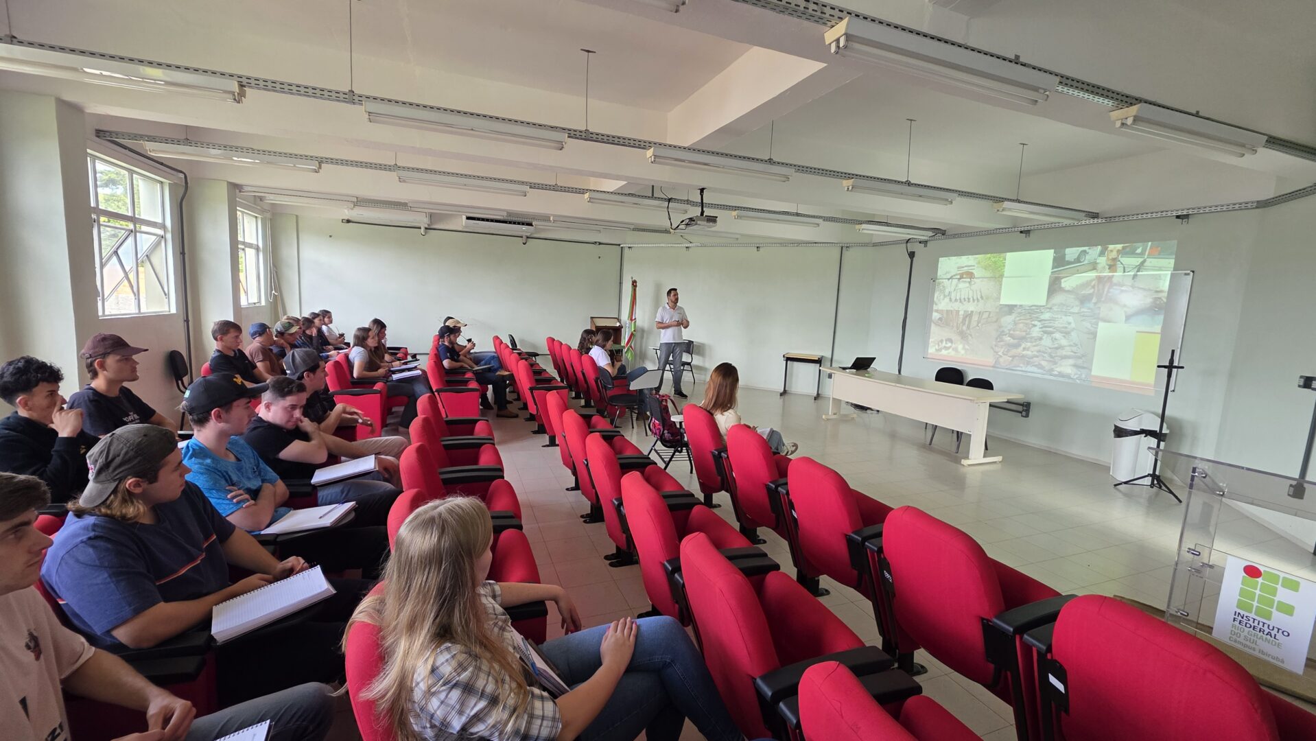 A atuação da defesa sanitária animal no Brasil foi tema de uma palestra ministrada pelo médico-veterinário Lucas Oberherr, da Divisão de Defesa Sanitária Animal, para estudantes do primeiro semestre do curso de Agronomia do IFRS Campus Ibirubá. A atividade integrou a disciplina de Fundamentos de Zootecnia, conduzida pela professora Anna Carolina Confortin e aconteceu na manhã de 15 de abril.