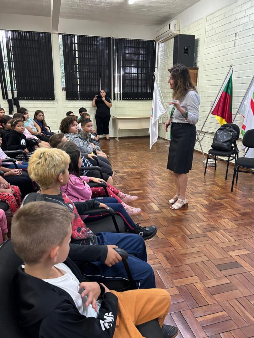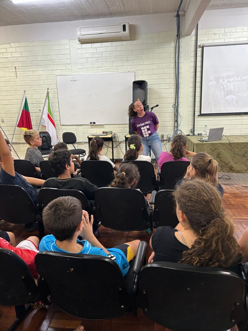 Na manhã e na tarde desta quinta-feira, 13 de março, o IFRS Campus Ibirubá recebeu com muita alegria crianças e adolescentes, atendidos pelo Centro de Referência de Assistência Social (CRAS) de Ibirubá – RS. A diretora-geral, Sandra Rejane Zorzo, deu as boas-vindas e fez um agradecimento especial a professora Rita, a direção e as monitoras do CRAS pela parceria na realização do projeto. Na sequência a professora Rita de Cássia Quadros da Rosa deu as boas vindas e passou as orientações e informações a respeito   da organização e funcionamento das aulas de capoeira. Após a apresentação inicial, a professora Rita realizou um tour pelo campus.