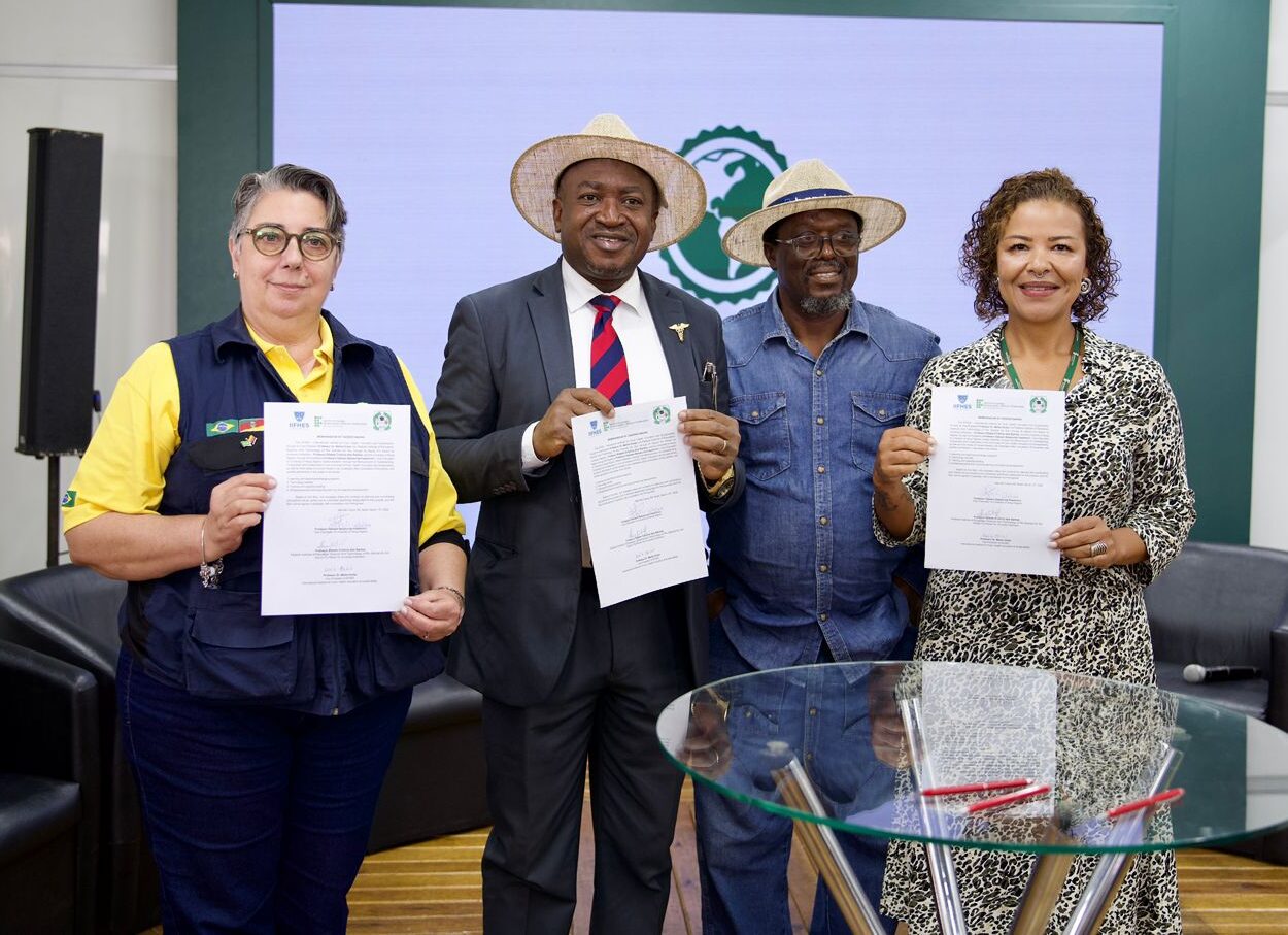 O Instituto recebeu ainda no espaço representantes de universidades e embaixadas da Nigéria, Tanzânia e Benin, por meio da Secretaria de Desenvolvimento Econômico do Rio Grande do Sul. Um memorando de intenções foi assinado entre o IFRS e a Universidade Abuja, da Nigéria (foto ao lado). A partir da parceria, as instituições poderão, futuramente, estruturar ações conjuntas para cooperação em mobilidade de estudantes e servidores, ensino de português e projetos conjuntos.