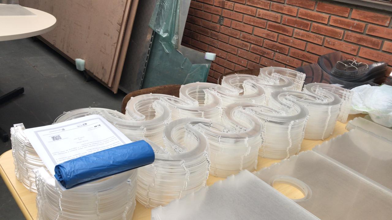 O CTA utiliza seus equipamentos para realizar corte a laser e furação dos protetores. A mão de obra é de servidores que trabalham de forma remota ou em revezamento, a fim de evitar riscos de contaminação. Já a matéria-prima – basicamente acrílico, PET, elástico e cola – é oriunda de doações (saiba como ajudar abaixo).