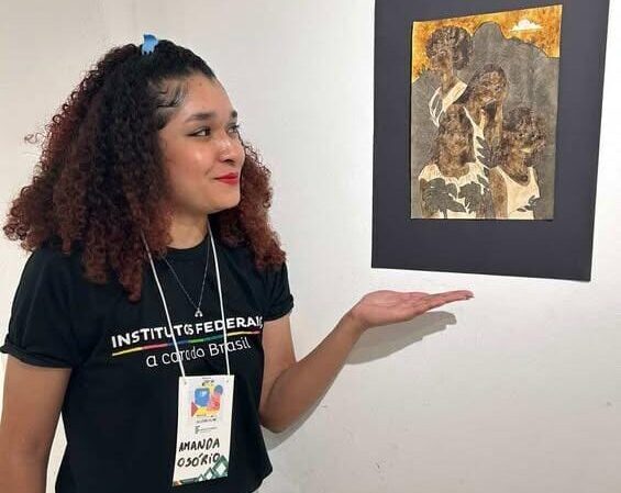 Durante todo o evento, trabalhos de artes visuais ficaram expostos na Galeria de Artes Visuais. No local, puderam ser conferidas pinturas, desenhos, fotografias e esculturas que utilizam técnicas como grafite, lápis de cor, tinta acrílica, óleo sobre tela, papietagem, dentre outros. Entre as obras, estava a pintura “Raízes de Resistência: Mulheres Negras e Indígenas do Campus Osório, 2025”, concebida com tintas feitas a base de pigmentos naturais pela graduanda de letras Amanda Catarina Cardoso dos Santos, que é bolsista do projeto de ensino “Intervenções do NEABI”, coordenado pela técnica em assuntos educacionais e coordenadora do Núcleo de Estudos Afro-Brasileiros e Indígenas (NEABI) Maiara Alessandra Lopes da Silva.