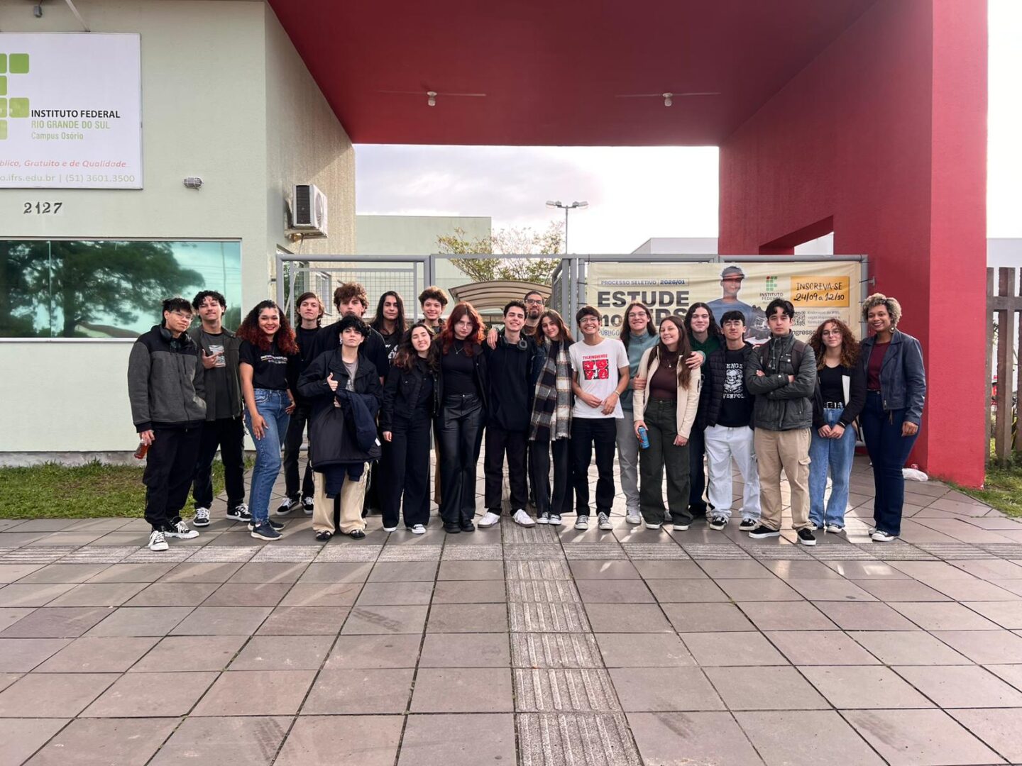 Música, teatro, dança, vídeo e arte visual. A atmosfera artística dos campi do IFRS tomou conta da Casa das Artes de Bento Gonçalves, nos dias 7 e 8 de outubro de 2025, com a realização da XII Mostra de Arte e a III Mostra de Audiovisual do IFRS. O Campus Osório se fez presente no evento com uma delegação de 27 componentes, entre estudantes e servidores, que participaram ativamente das 15 horas de programação intensa como representantes das bandas E.G.O, Panta Rhei e Samsara, do grupo Instrumental Gaia e com a pintura a base de pigmentos naturais “Raízes de Resistência”.