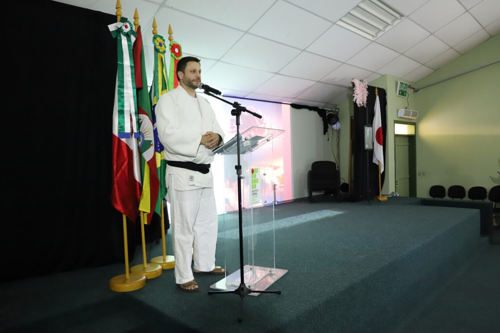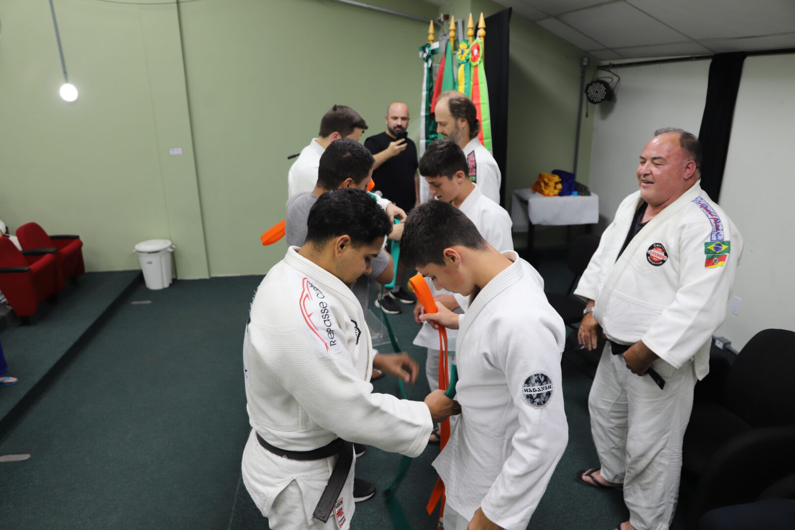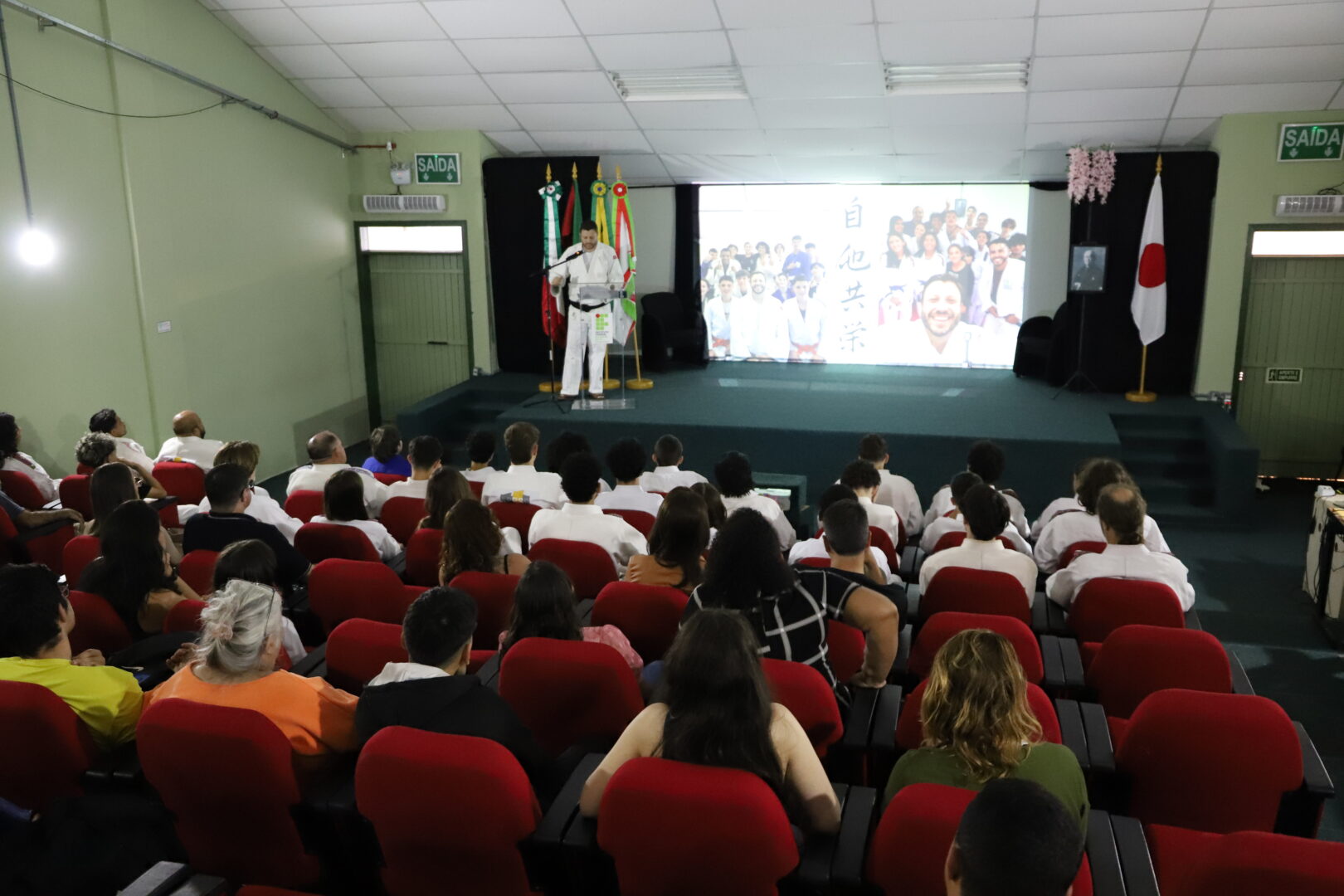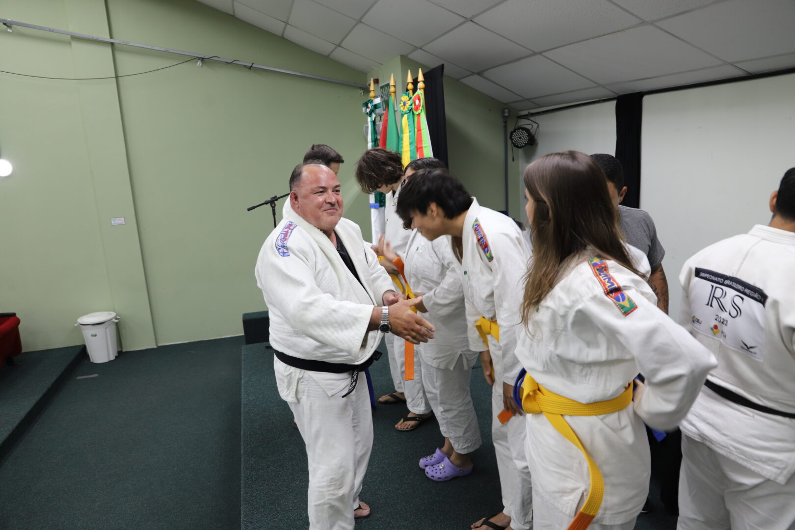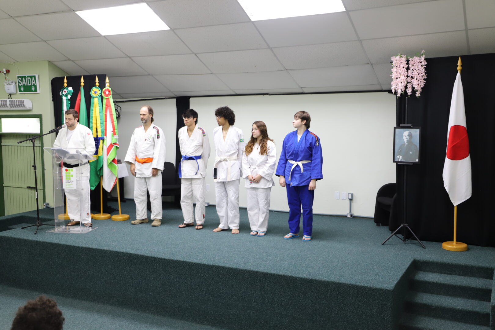 Um grupo de 23 alunos receberam as novas faixas, reconhecidas pela Federação Gaúcha de Judô, na Cerimônia de Graduação da Equipe de Judô (Bonenkai), realizada na última quarta-feira, 26 de novembro de 2025, no auditório Agnes Schmelling, do IFRS – Campus Osório.