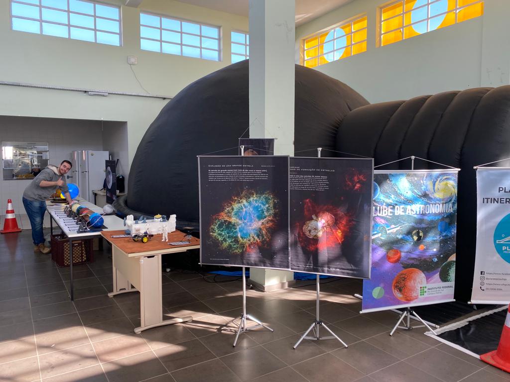 Entre os dias 14/09 e 19/09 o campus Osório recebeu o planetário e promoveu a exposição de materiais já construídos até o momento pelos projetos Clube de Astronomia, Origens e Windmaker do nosso campus.  Em novembro a ideia é abrir a exposição para outras escolas da região do Litoral Norte Gaúcho.
