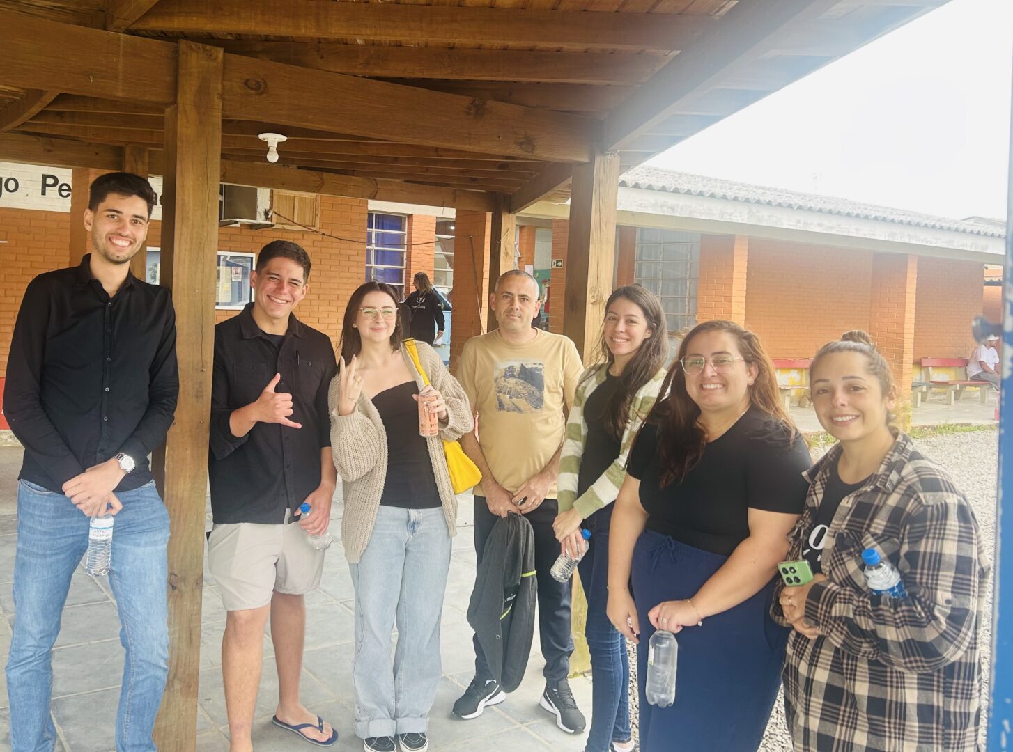 Onze estudantes concluintes do curso superior de Tecnologia em Processos Gerenciais (TPG) realizaram a prova do Exame Nacional de Desempenho dos Estudantes (ENADE) na tarde do último domingo, 23 de novembro de 2025. O grupo foi recepcionado pelo coordenador do curso, professor João Paulo Agostini, na escola designada para o teste, a Cônego Pedro, localizada no bairro Glória, em Osório. Além de suporte emocional, ele disponibilizou canetas e água aos estudantes.