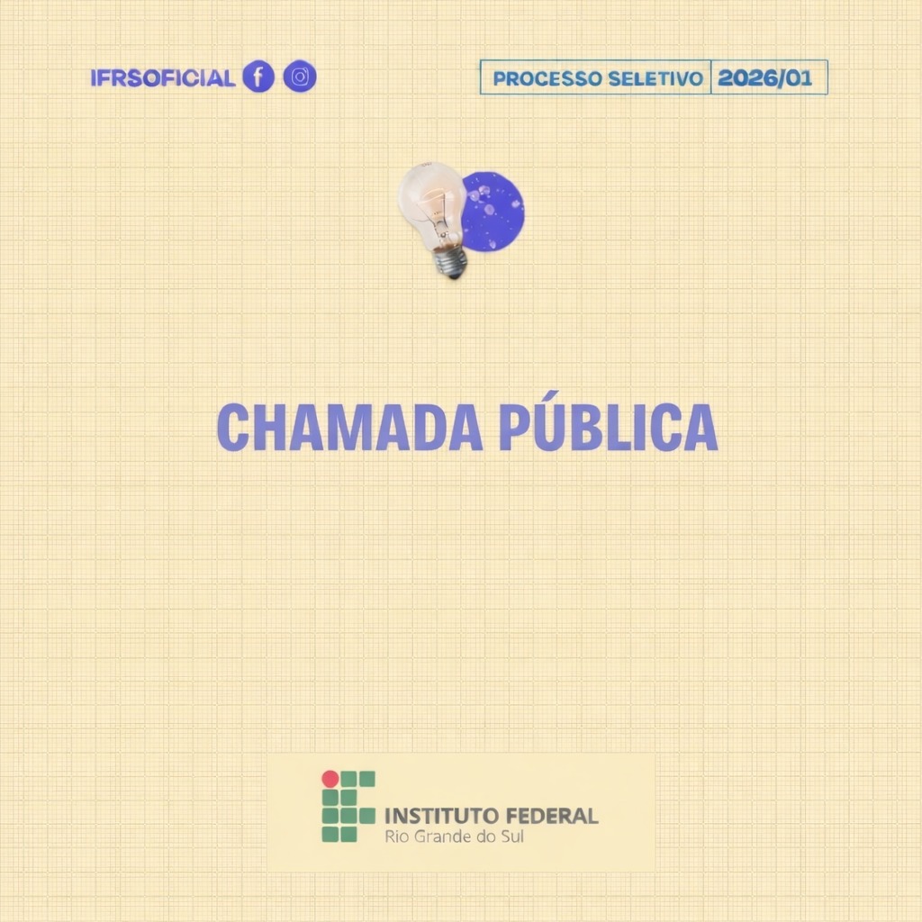 Está publicada no site ingresso.ifrs.edu.br a Chamada Pública do Processo Seletivo de Estudantes 2026/1 do Instituto Federal de Educação, Ciência e Tecnologia do Rio Grande do Sul (IFRS). A Chamada Pública corresponde à última etapa de convocação para matrícula e é destinada ao preenchimento das vagas que não foram ocupadas na Primeira Chamada.