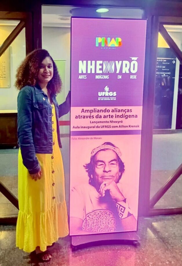 Imortal da Academia Brasileira de Letras, Ailton Krenak, é autor de livros como Futuro Ancestral, A vida não é útil, O amanhã não está à venda e Ideias para adiar o fim do mundo, obras que reúnem conteúdos de suas palestras. Na UFRGS, o escritor e filósofo chamou à reflexão sobre a arte indígena como formar de se pensar e construir outros mundos, destacando a crise ambiental, a necessidade de estabelecer vínculos com a natureza, e o quanto os povos originários traduzem seus territórios em arte, como um instrumento privilegiado de comunicação com o outro, configurando-se em uma linguagem da diversidade.