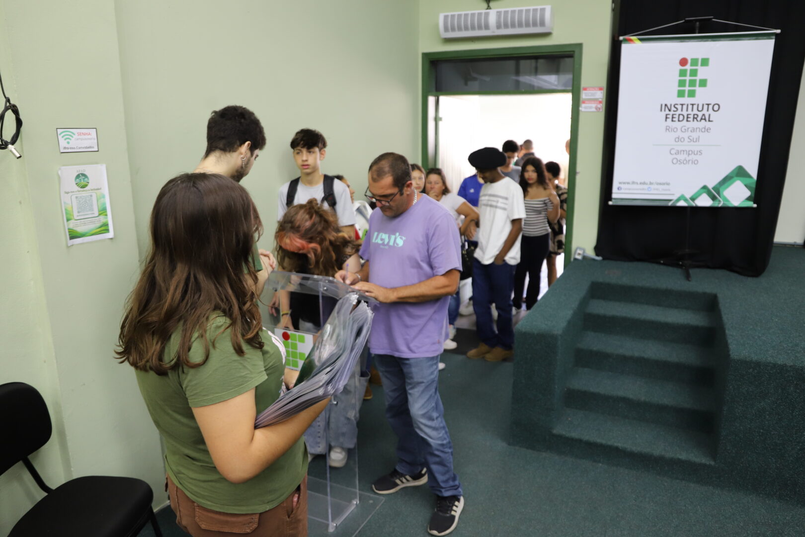 O grupo de 2026 do PartiuIF foi recepcionado na tarde de quinta-feira, dia 9 de abril, no auditório Agnes Schmelling. A atividade reuniu a equipe do programa e a gestão do campus para apresentação da instituição e do PartiuIF em uma reunião com pais e responsáveis, além da realização de atividades voltadas ao acolhimento dos estudantes. Participaram do evento o diretor-geral pro tempore Marcelo Paravisi; o coordenador de ensino Alessandro Bucussi; e a diretora de extensão Claudia Pelissoli. Na sequência, os docentes Mateus da Rosa Pereira (Língua Portuguesa), Vera Maria Klajn (Ciências da Natureza) e Eron Magno Aguiar e Silva (Matemática) discorreram sobre suas disciplinas no PratiuIF e ressaltaram a oportunidade de aprimoramento dos estudos oferecida pelo programa.