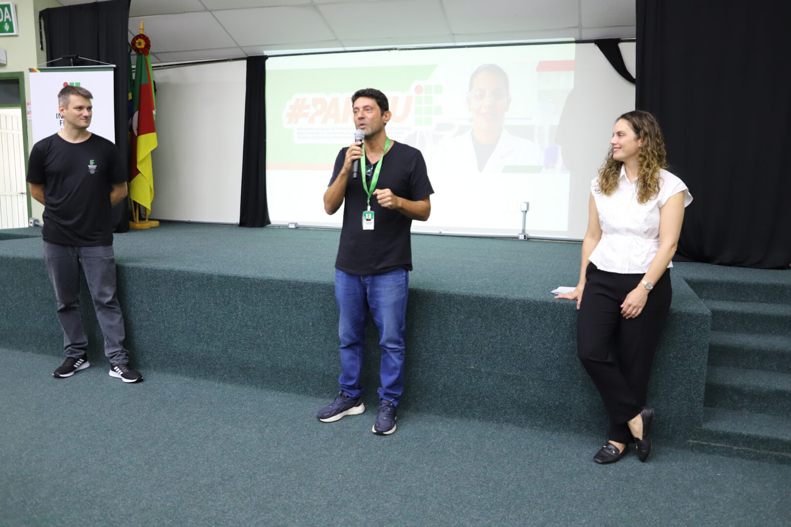 A equipe de apoio também foi conhecida pelos participantes do encontro e cada um teve sua história ressaltada enquanto estudantes do Campus Osório. Milena da Silveira Henkel, que está no 5º semestre do curso de Licenciatura em Letras e é egressa do Técnico em Informática Integrado ao Ensino Médio é a monitora da disciplina de Português; Henrique da Silva Andrades, da pós-graduação em Educação Básica e Profissional e egresso da Licenciatura em Matemática e do Técnico em Administração Integrado ficou com a monitoria da Matemática; Maria Eduarda Borba, do 3º ano do Técnico em Informática é a monitora de Ciências da Natureza; e como psicóloga do PartiuIF segue Natália Alves, egressa do curso Técnico em Administração Integrado ao Ensino Médio, que no ano passado também fez o acompanhamento do programa.