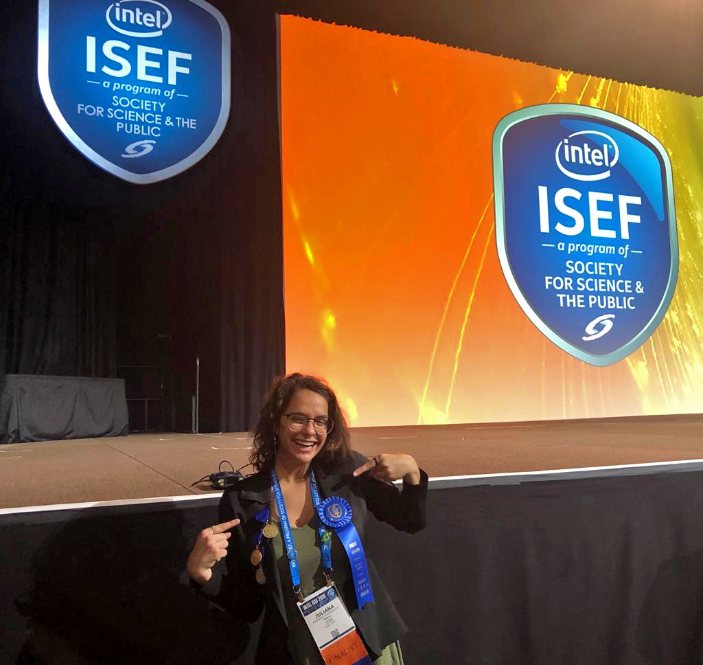 A estudante gaúcha Juliana Estradioto recebeu o 1º lugar na área de Ciência dos Materiais na maior feira de ciências do mundo, a Intel International Science and Engineering Fair (Isef). A premiação foi anunciada nesta sexta-feira, 17 de maio de 2019, durante o evento, que ocorreu de 12 a 17 de maio em Phoenix, Estados Unidos. A feira contou com a participação de mais de 1.800 estudantes de ensino médio de 80 países.