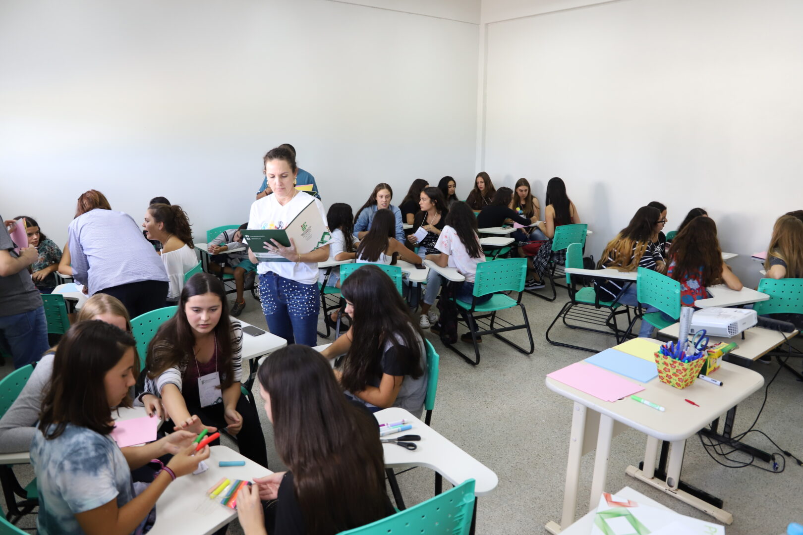 A sala de aula lotada com 28 jovens das escolas Osvaldo Amaral, General Osório e Albatroz na seleção do projeto “Meninas na Ciência” é o retrato do interesse crescente das mulheres pelas áreas de ciência, tecnologia e engenharias. Realizada no dia 26 de março de 2019, a triagem definiu as nove estudantes do 9º ano do ensino fundamental contempladas para participar da ação coordenada pela professora Flávia Twardowski.