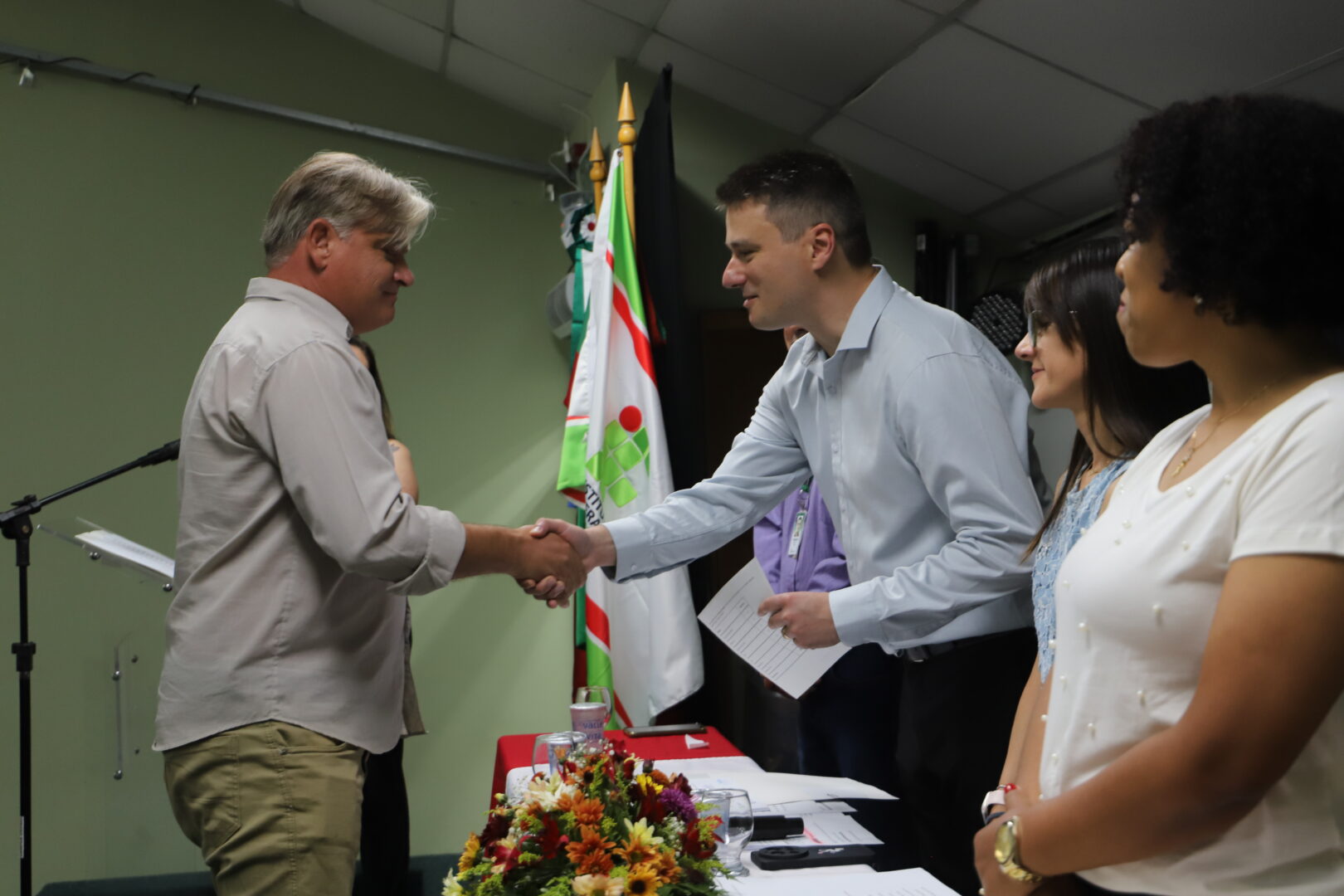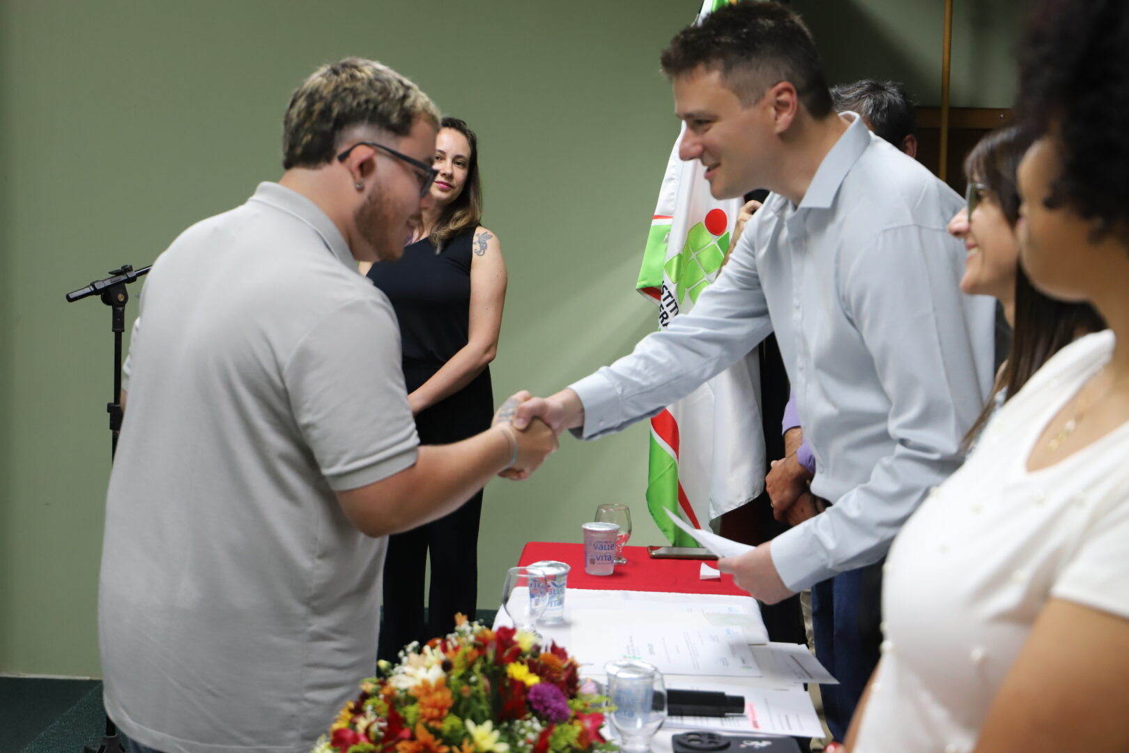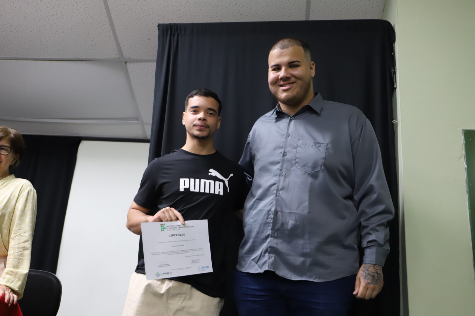 Também se fizeram presentes na solenidade os professores Bruno Chagas Alves Fernandes, Thais Ramos Viegas e Maria Cristina Schefer; a técnica-administrativa de permanência e êxito, Vera Marisa Gasparetto; e a voluntária Maria Eduarda Batistel da Silva Borba, estudante do curso Técnico em Informática Integrado ao Ensino Médio, carinhosamente chamada de anja pelo apoio que deu turma.
