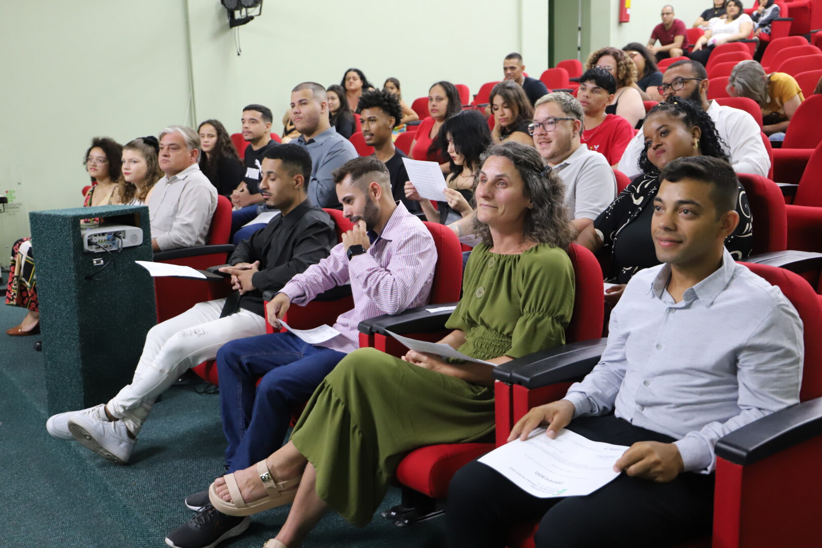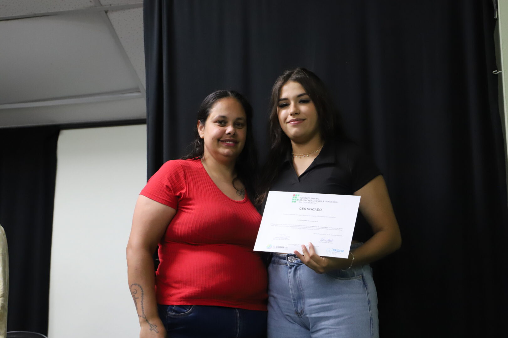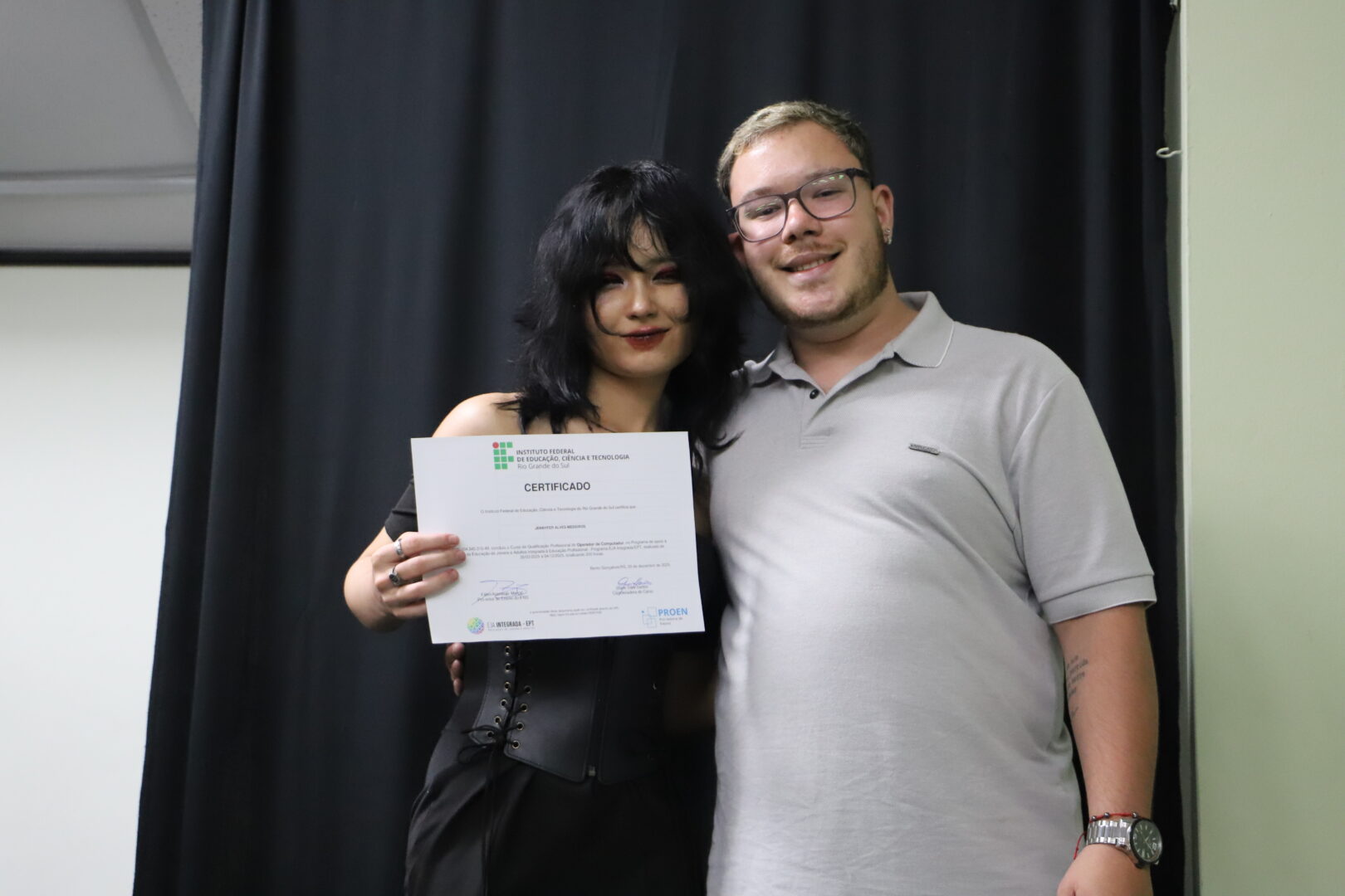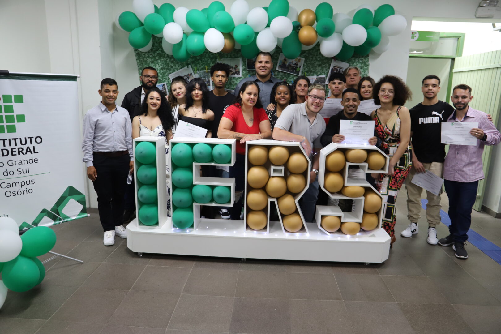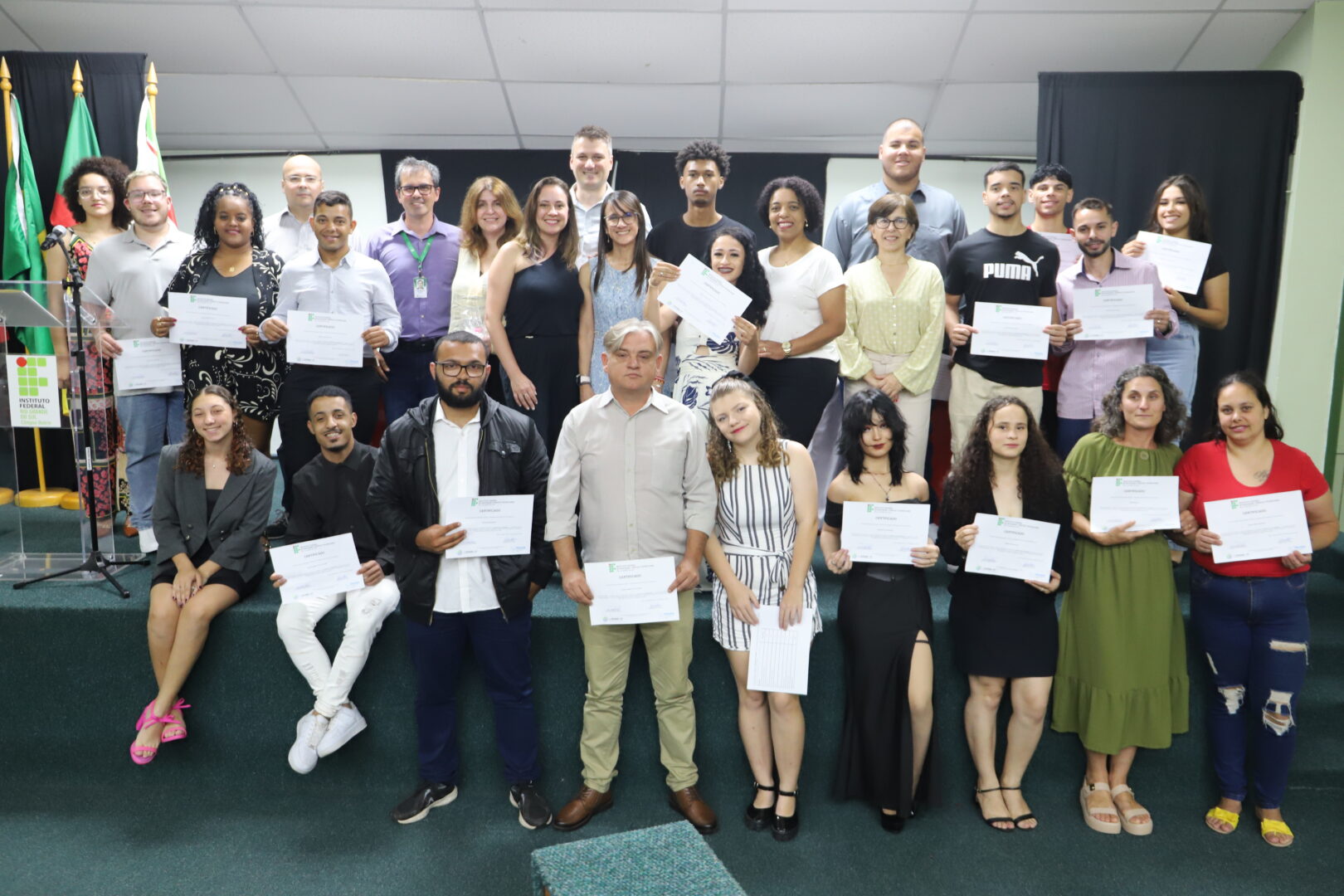 Na noite de 13 de dezembro, no auditório Agnes Schmeling, 20 estudantes da Educação de Jovens e Adultos (EJA) da Escola Albatroz receberam seus certificados do curso de qualificação profissional Operador de Computador, na modalidade Concomitante. O curso é ofertado por meio do programa de Educação de Jovens e Adultos Integrada à Educação profissional (EJA Integrada), em parceria com a 11ª Coordenadoria Regional de Educação de Osório (CRE). O grupo, composto por alunos do Ensino Médio, participou de aulas no campus nas quartas-feiras à noite por dois semestres, totalizando 200 horas.