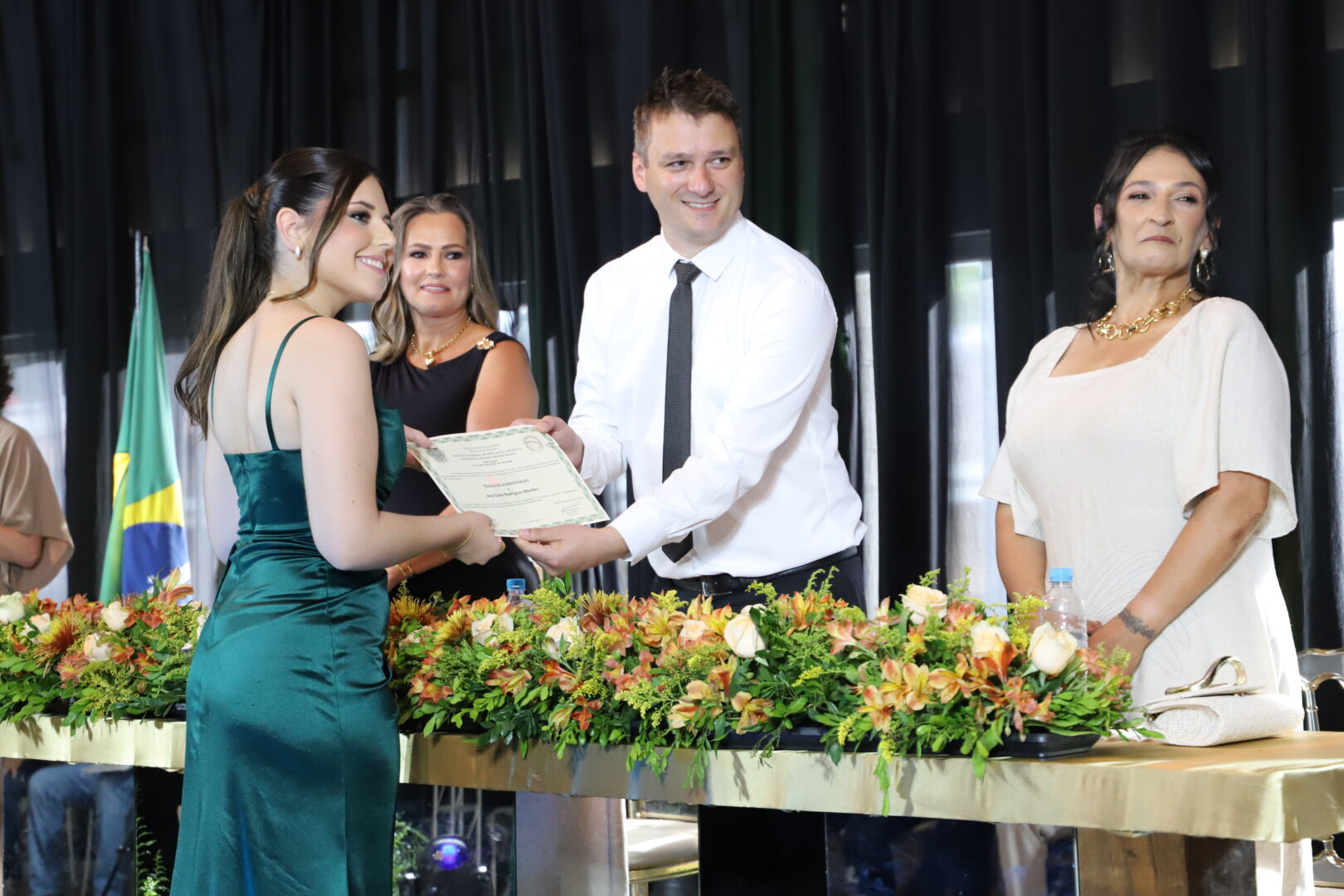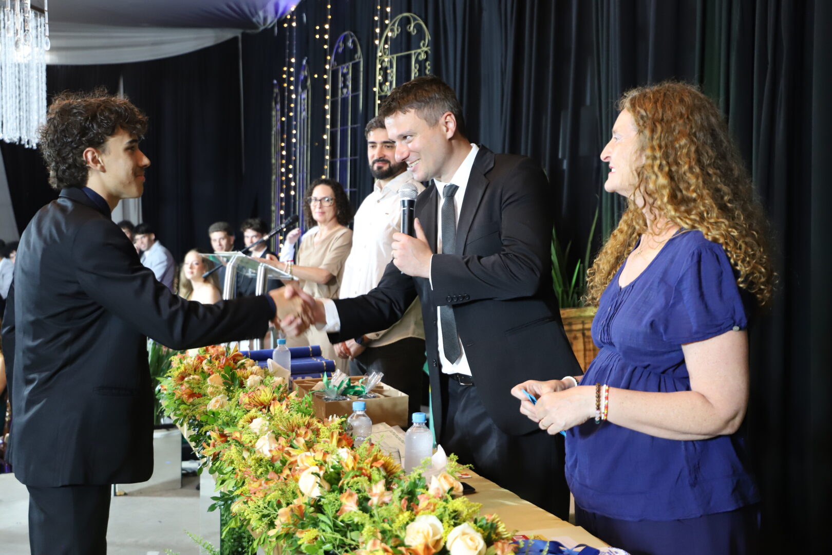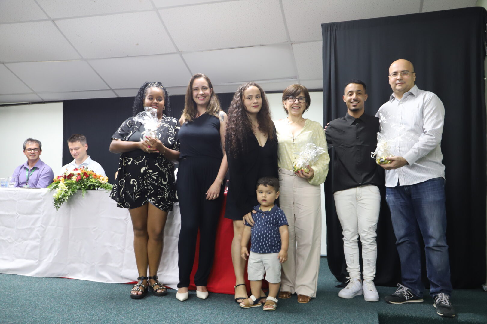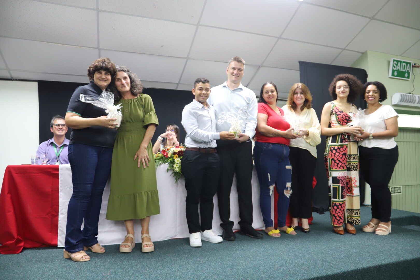 Ao final, também foram chamados ao palco para uma foto, os estudantes formandos que acompanhavam a solenidade e aplaudiam com carinho seus colegas de curso.
