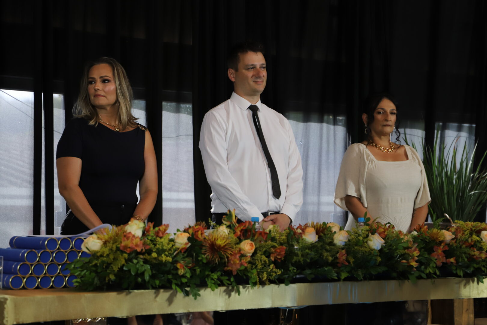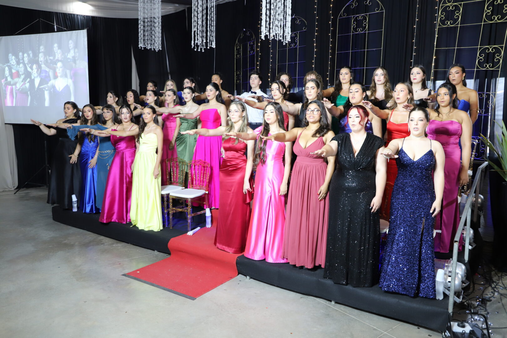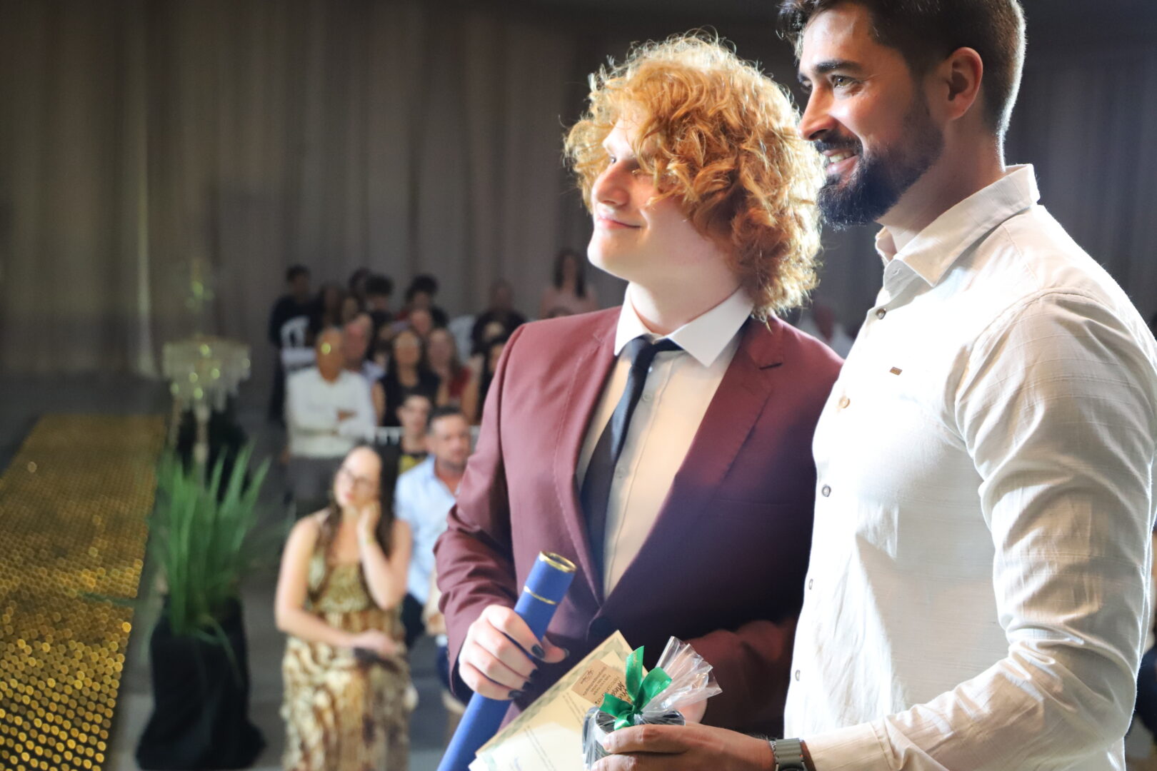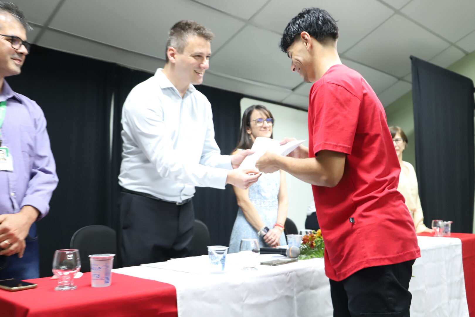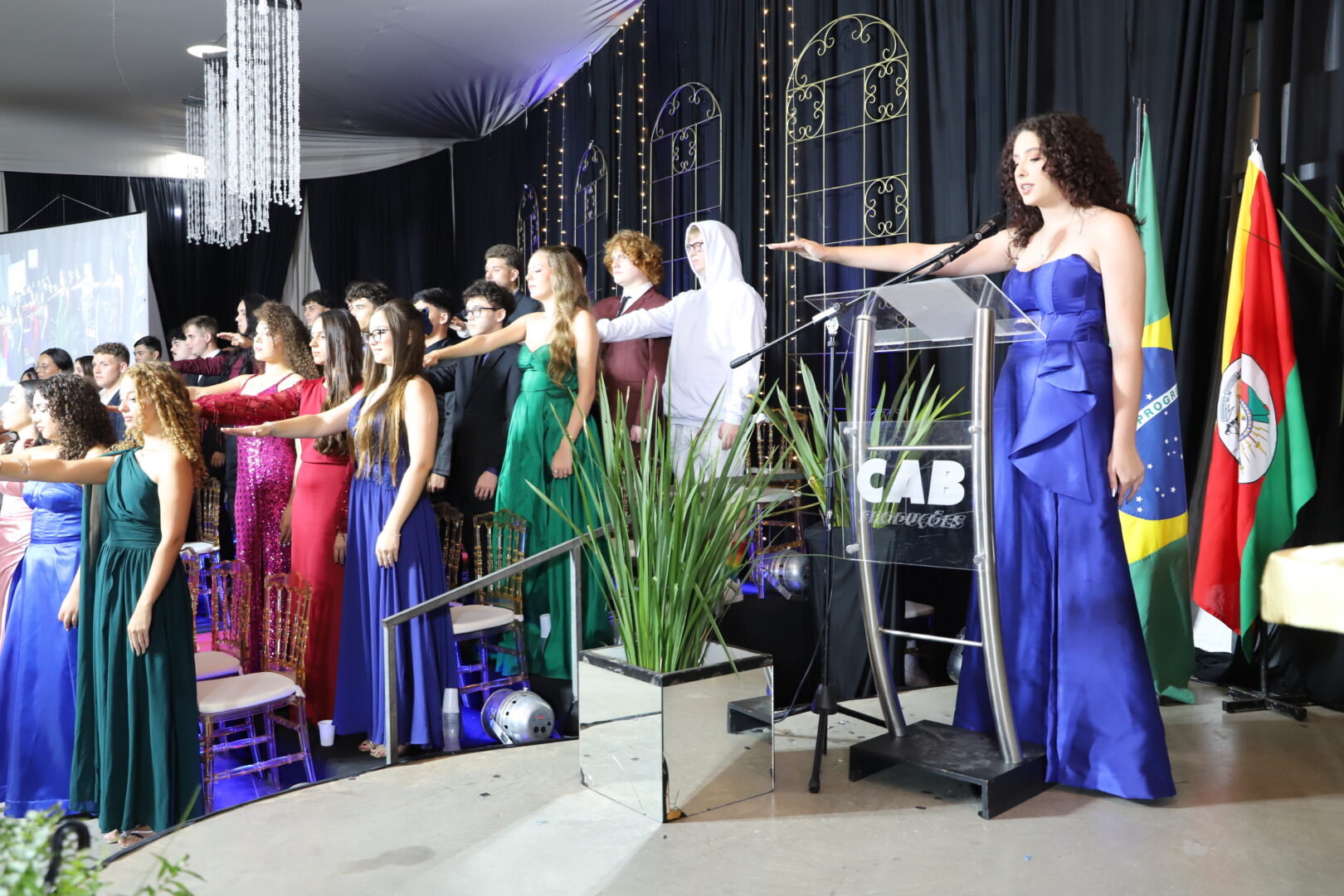 Ao final, também foram chamados ao palco para uma foto, os estudantes formandos que acompanhavam a solenidade e aplaudiam com carinho seus colegas de curso.